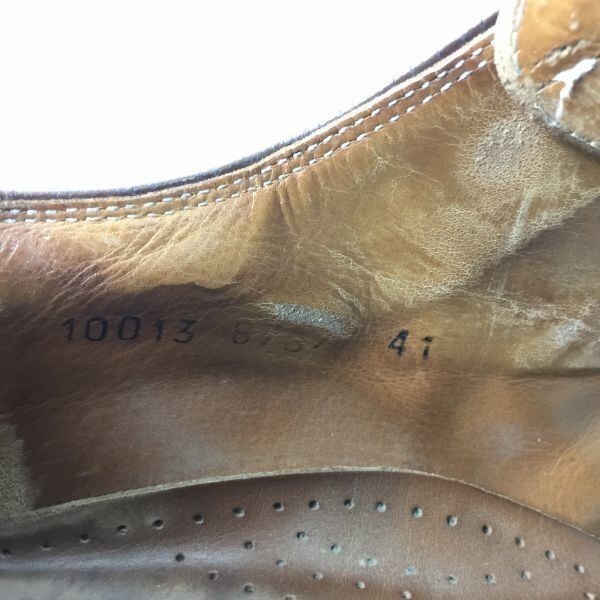 | 商品説明 | ※商品情報について※ 上部に表示されております【アイテム】・【表記サイズ】などの各項目は、多モール連携システムによる商品カテゴリ振り分けの際に、自動で表示される大まかな情報となっており、商品タグなどに記載されている正式な情報と一部異なっている場合がございます。 大変恐縮ではございますが、ご購入の際は下記の詳細情報や商品画像のご確認をお願い致します。 ーーーー上質なレザーを使用しており、作りも堅牢なシューズです。 ビンテージ品の為、多少の経年劣化はあるものの使用に問題はないレベルの良品です。 多少の使用感、シワ、小傷、インソールの剥がれはあるもののご着用に問題のあるダメージはございませんでした。 USED品に理解がある方のご購入をお待ちしております。 ●サイズ: 41 日本サイズ 25.5 〜 26.0 相当 ※靴メーカーによってサイズ感やワイズの細さには若干の差異がある場合がございますので、予めご了承ください。 アウトソールの長さ 約31.5cm甲部分の長さ 約10.5cm |