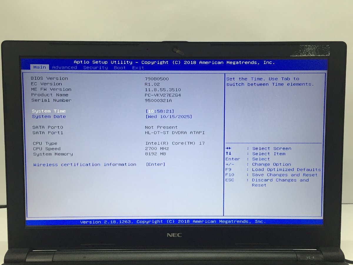 ジャンク/ NEC PC-VKV27EZG4 Intel Core i7-7500U メモリ8.19GB ストレージ無し 【K22926】