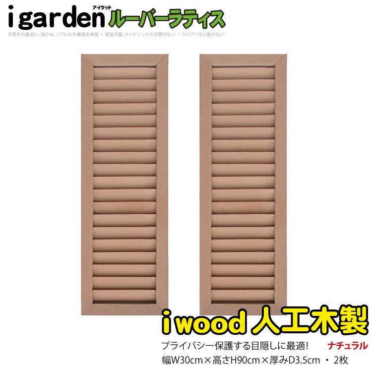 igarden 人工木 ルーバー ラティス 2枚セット H900×W300 ナチュラル 樹脂製 目隠し 日よけ 換気 仕切り 採光 境界 フェンス 10056