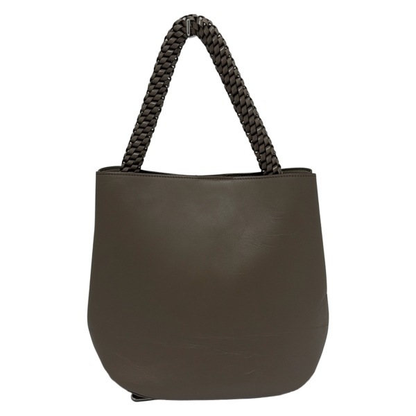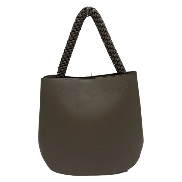 ヒロフ HIROFU ハンドバッグ - レザー グレーベージュ 編み込みハンドル バッグ
