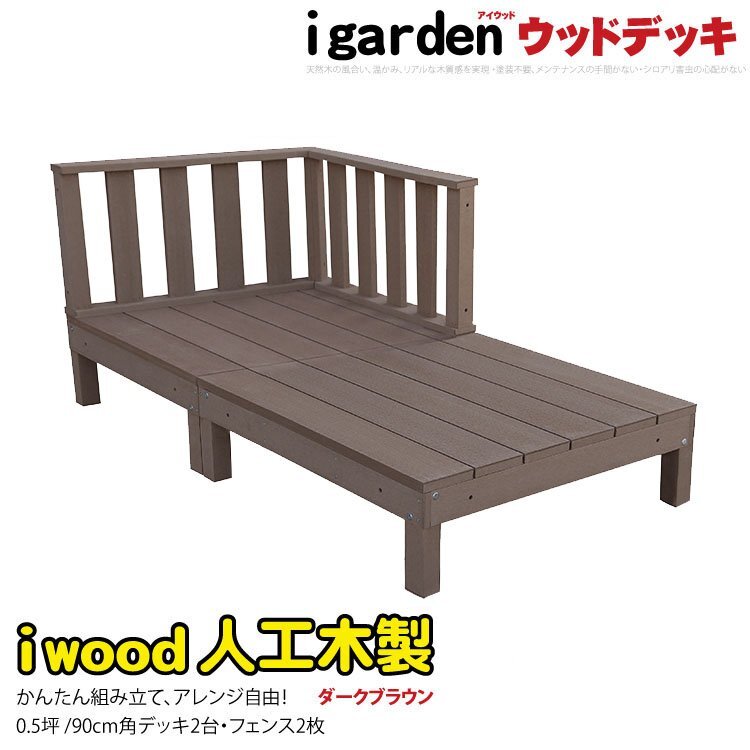 igarden 人工木 アイウッドデッキ 4点セット(デッキ2・ローフェンス2)0.5坪 ダークブラウン 樹脂製 テラス バルコニー -2d2fdb