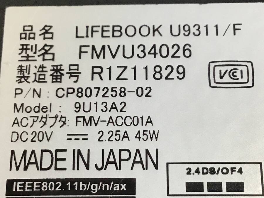 FUJITSU FMVU34026 LIFEBOOK U9311/F Core i5 1145G7 2.60GHz 8GB 256GB(SSD)■一部保証品