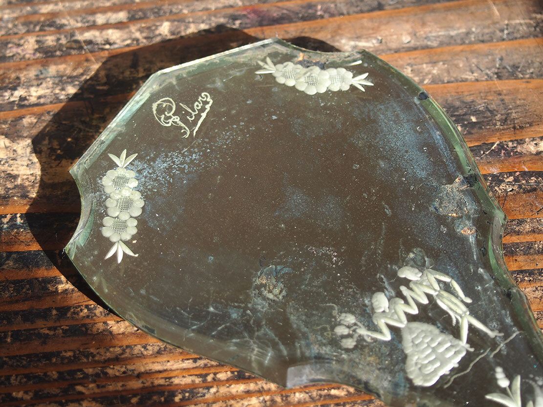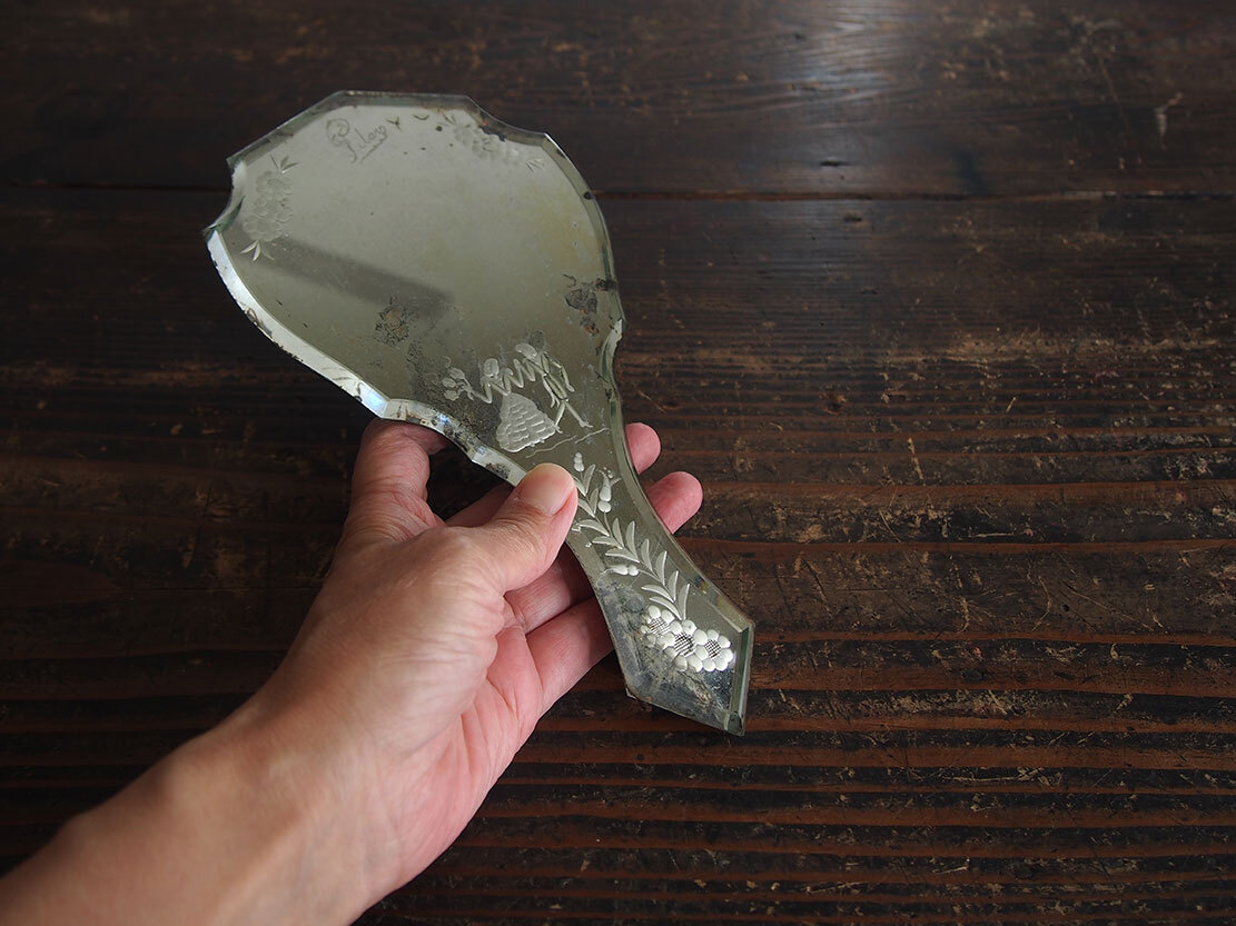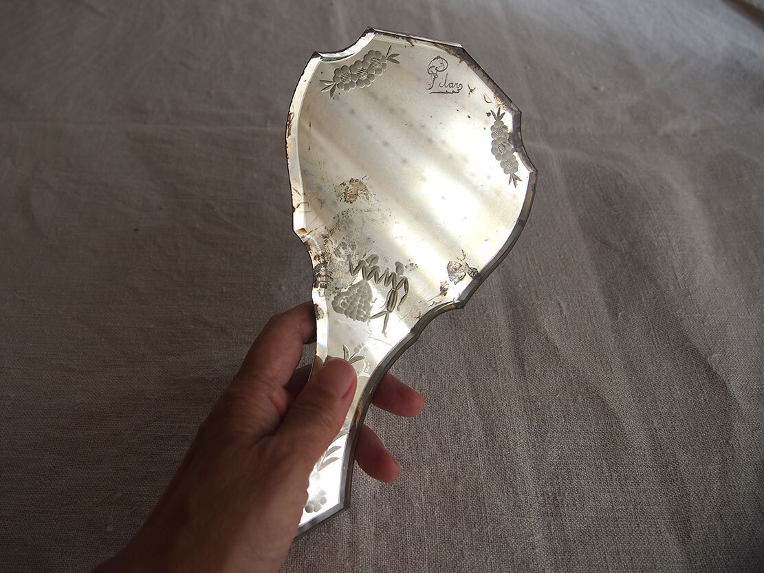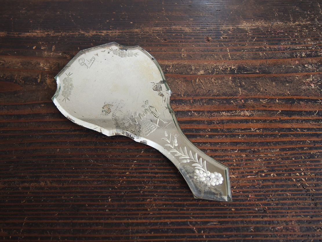 彫刻の施された古い手鏡 ハンドミラー 1900年 ガラスエッチング 南欧 フランス 家具 アンティーク/K271 ●サイズ: 13cm×23.8cm×1.3cm 285g ●材質:鏡、本革等 南欧の骨董市にて入手、1900年ぐらい?。古い手鏡、上部に名前が彫られているようなので、贈り物としてオーダーされたものでしょう。ダンスをする?男女や花の彫刻もほどこされています。裏面はエピのエンボス模様の革張りです。ご覧のように傷や腐食などあります。リメイク、参考資料にも。 詳細は写真でご確認いただけます。古い物だと言う事をご理解の上のご入札をお願い致します。材質及び年代の判定は困難な場合があります、差異についてはあらかじめご了承下さい。 ー ー ー ー ー ー ー ー ー 記載にない方法での発送はいたしません。 発送をお急ぎのお客様にはご希望に添えない場合があります。 ー ー ー ー ー ー ー ー ー ●その他 ヤフオクの小さな写真では商品を詳細にご覧頂く事ができません。リンク写真で質感ダメージ等の写真を数多くアップしています。必ず全部の写真がよく見える環境でご覧下さい。本商品は時代を経た古い物です。写真や説明で記載できないようなキズやシミ、古い物特有の臭いのある物もあります。できる限り詳細に説明するよう努力しておりますが、ご理解頂ける方、神経質で無い方、埃によるアレルギー等の無い方のご入札をお願いします。 必ず当店の自己紹介欄と落札後の落札通知をご覧下さい。 土曜日曜日は基本的には定休日です。メール、質問への回答は月曜日にいたします。 ご連絡は落札後48時間以内にお願いします。ご連絡が無い場合はお客様都合によるキャンセルとさせて頂きます。落札から1週間(土日祝日含む)経過してもご入金が無い場合も同様といたします。ご注意下さい。 特に評価「0」の新規のお客様、および 私とのお取り引きが初めてのお客様は遅れる事の無い様にお願い申し上げます。 評価の悪いお客様のご入札は取り消す場合があります。 入札の取り消しおよびキャンセルは固くお断りいたします。 自己紹介欄には急な連絡事項等も記載してあります、ご入札前に必ずご覧下さい。落札後には『落札通知』の内容も必ずご確認ください。 当オークションをご覧下さりありがとうございました。 Accept Paypal payment |
