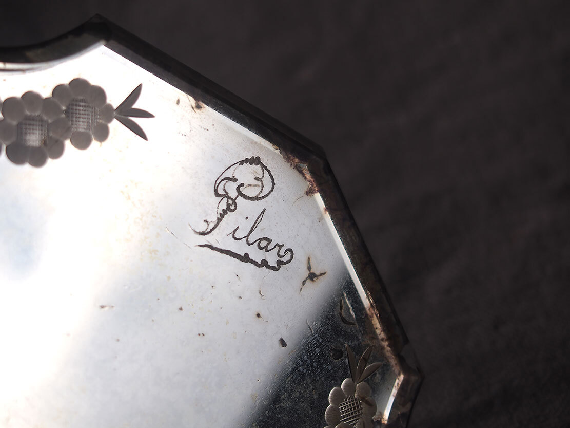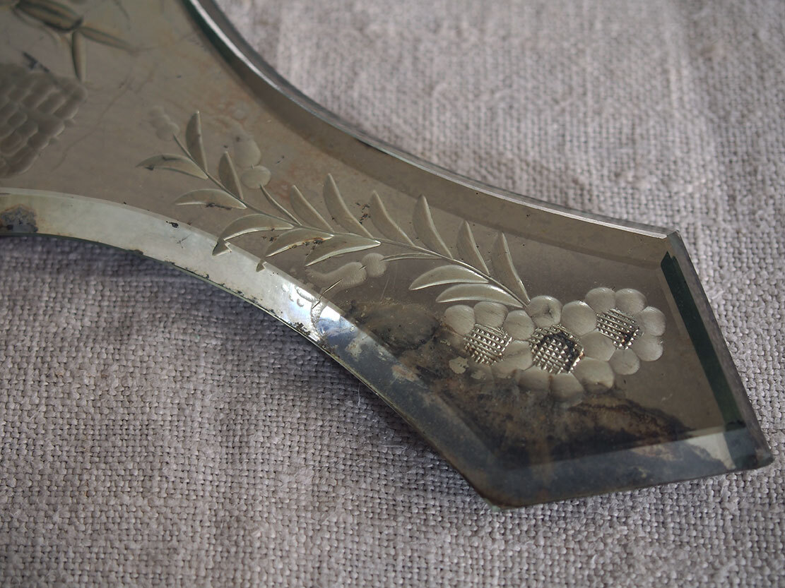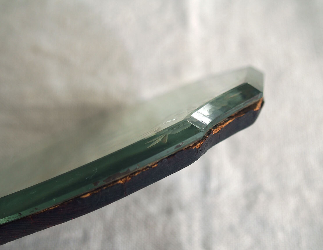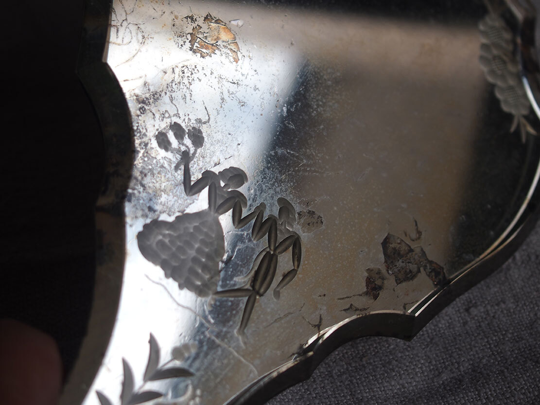 彫刻の施された古い手鏡 ハンドミラー 1900年 ガラスエッチング 南欧 フランス 家具 アンティーク/K271 ●サイズ: 13cm×23.8cm×1.3cm 285g ●材質:鏡、本革等 南欧の骨董市にて入手、1900年ぐらい?。古い手鏡、上部に名前が彫られているようなので、贈り物としてオーダーされたものでしょう。ダンスをする?男女や花の彫刻もほどこされています。裏面はエピのエンボス模様の革張りです。ご覧のように傷や腐食などあります。リメイク、参考資料にも。 詳細は写真でご確認いただけます。古い物だと言う事をご理解の上のご入札をお願い致します。材質及び年代の判定は困難な場合があります、差異についてはあらかじめご了承下さい。 ー ー ー ー ー ー ー ー ー 記載にない方法での発送はいたしません。 発送をお急ぎのお客様にはご希望に添えない場合があります。 ー ー ー ー ー ー ー ー ー ●その他 ヤフオクの小さな写真では商品を詳細にご覧頂く事ができません。リンク写真で質感ダメージ等の写真を数多くアップしています。必ず全部の写真がよく見える環境でご覧下さい。本商品は時代を経た古い物です。写真や説明で記載できないようなキズやシミ、古い物特有の臭いのある物もあります。できる限り詳細に説明するよう努力しておりますが、ご理解頂ける方、神経質で無い方、埃によるアレルギー等の無い方のご入札をお願いします。 必ず当店の自己紹介欄と落札後の落札通知をご覧下さい。 土曜日曜日は基本的には定休日です。メール、質問への回答は月曜日にいたします。 ご連絡は落札後48時間以内にお願いします。ご連絡が無い場合はお客様都合によるキャンセルとさせて頂きます。落札から1週間(土日祝日含む)経過してもご入金が無い場合も同様といたします。ご注意下さい。 特に評価「0」の新規のお客様、および 私とのお取り引きが初めてのお客様は遅れる事の無い様にお願い申し上げます。 評価の悪いお客様のご入札は取り消す場合があります。 入札の取り消しおよびキャンセルは固くお断りいたします。 自己紹介欄には急な連絡事項等も記載してあります、ご入札前に必ずご覧下さい。落札後には『落札通知』の内容も必ずご確認ください。 当オークションをご覧下さりありがとうございました。 Accept Paypal payment |