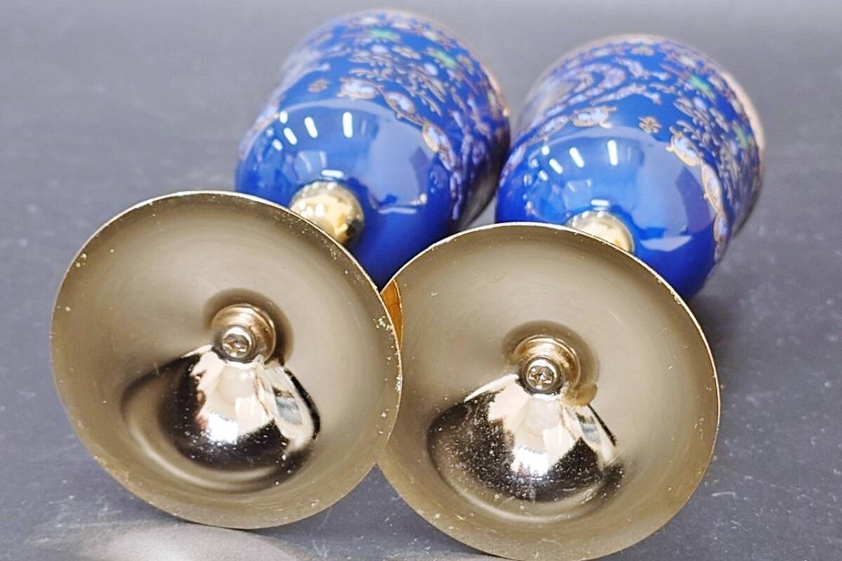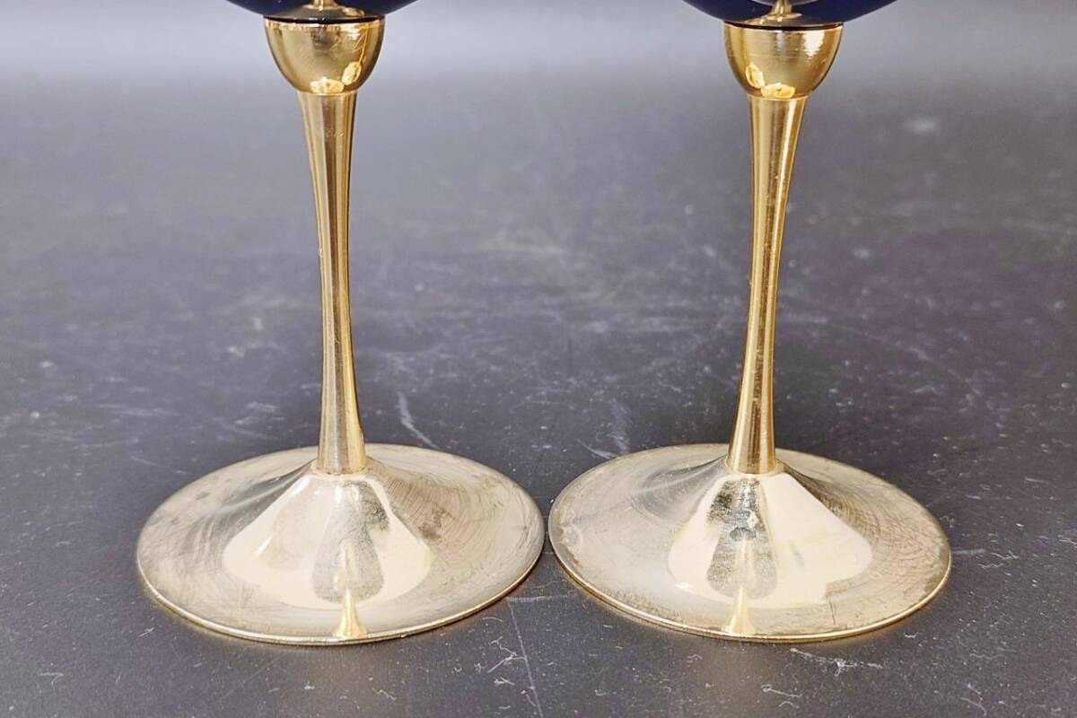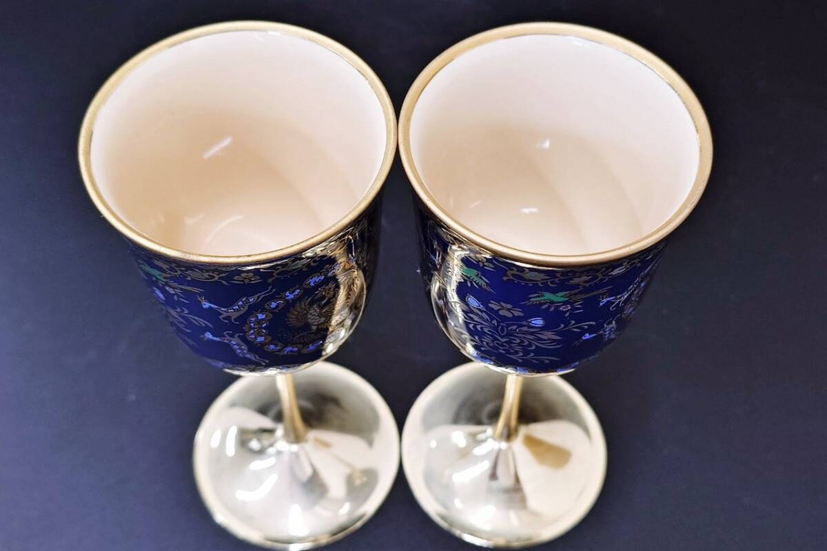 九谷焼 鹿窯 深藍譜 ワイングラス 鳳凰 金彩 ゴールド 金縁 ペア 2客 セット 洋食器 食器 インテリア コレクション 陶器 酒器