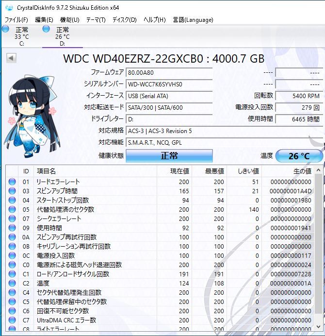 L123◇◆中古 WD Blue WD40EZRZ 4TB 3.5インチ HDD