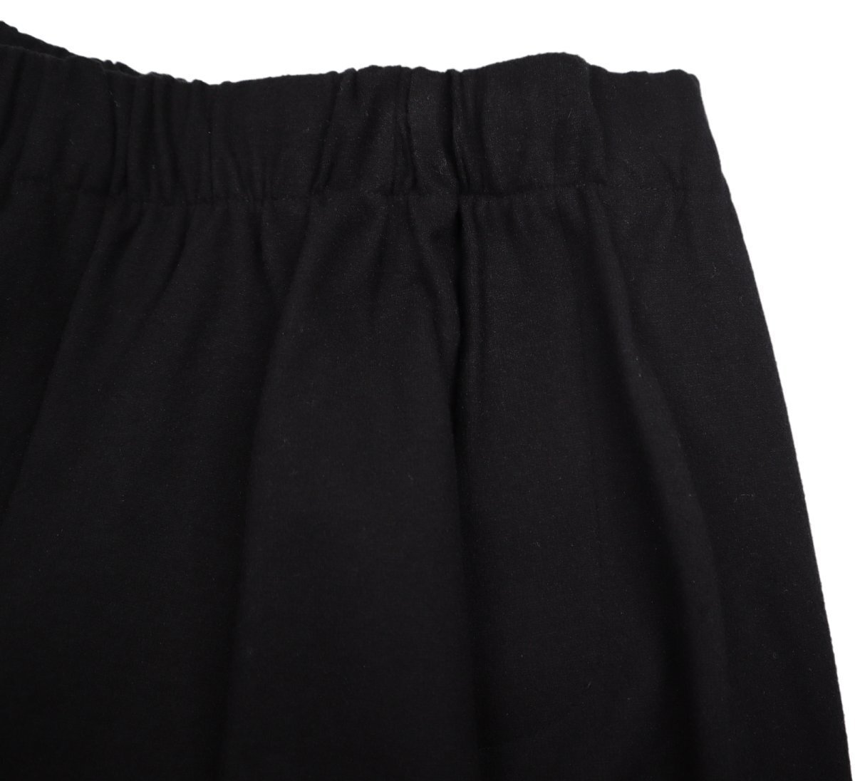 「参考対応ウエスト」 約 79~89cm (※伸縮性あるゴムウエストで、ウエスト紐で調整できます) 「伸縮させない状態での実寸ウエスト(平置き前側からウエスト位置計測×2)」 約 72.5cm 「股下」 約 72.5cm(シングル仕上げ) 「股下0cm付近ワタリ」 約 34.2cm 「股下10cm付近ワタリ」 約 30.2cm 「裾幅」 約 18cm 「股上」 約 31.5cm