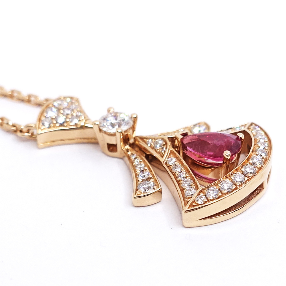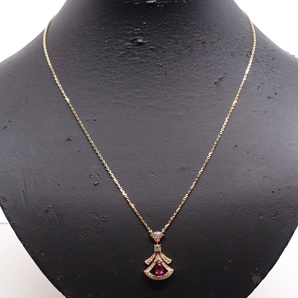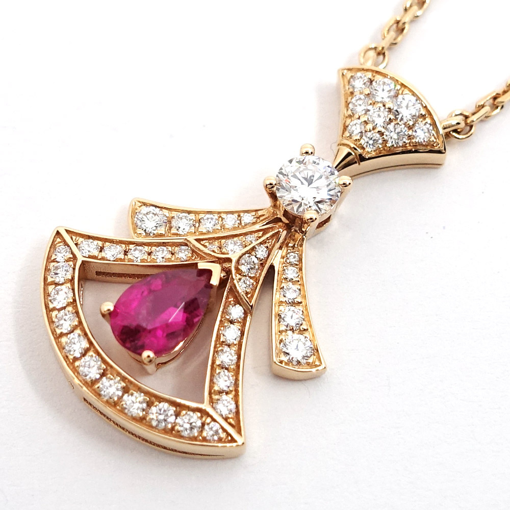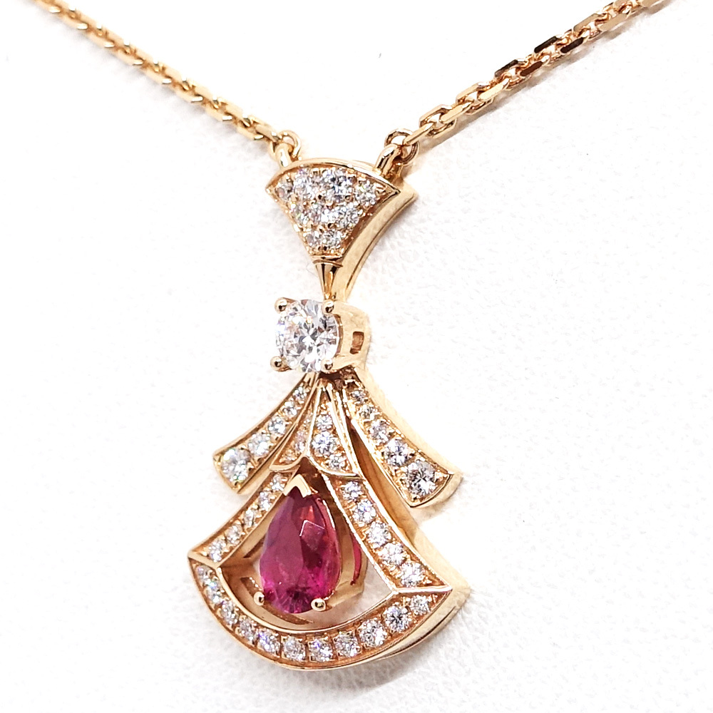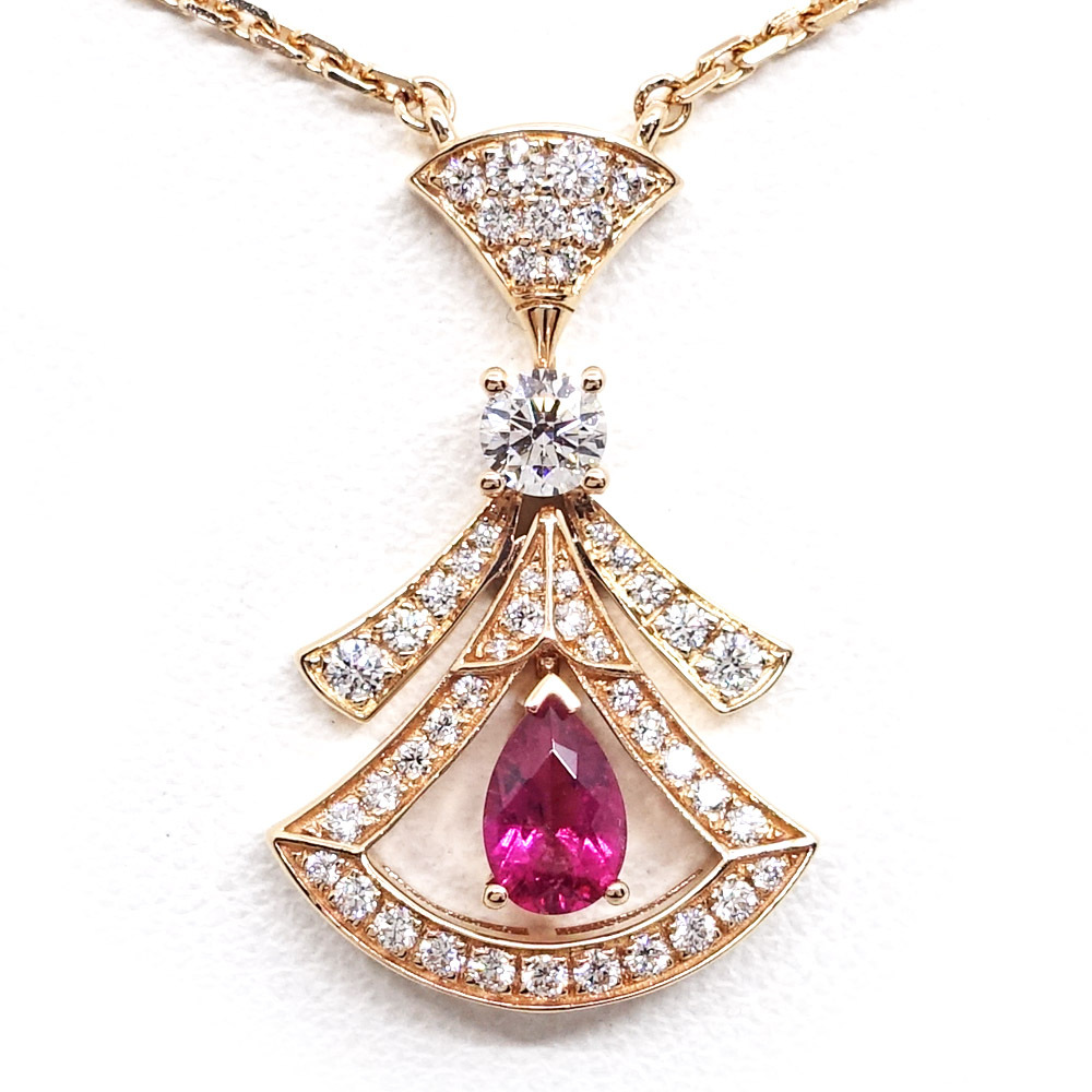【栄】ブルガリ K18PG ディーヴァドリーム ネックレス ダイヤモンド ルベライト 360619 750PG レディース ジュエリー