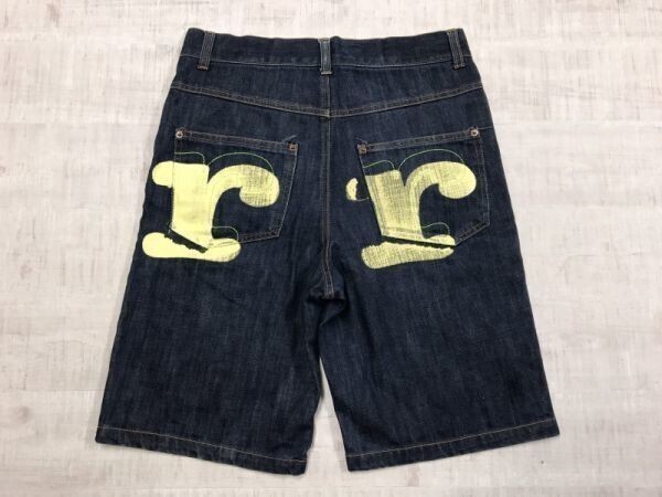 タイムアール Time-R ヒップ大胆プリント デニム ハーフ パンツ ジーンズ ボトムス オールド サーフ ストリート アメカジ メンズ M 紺