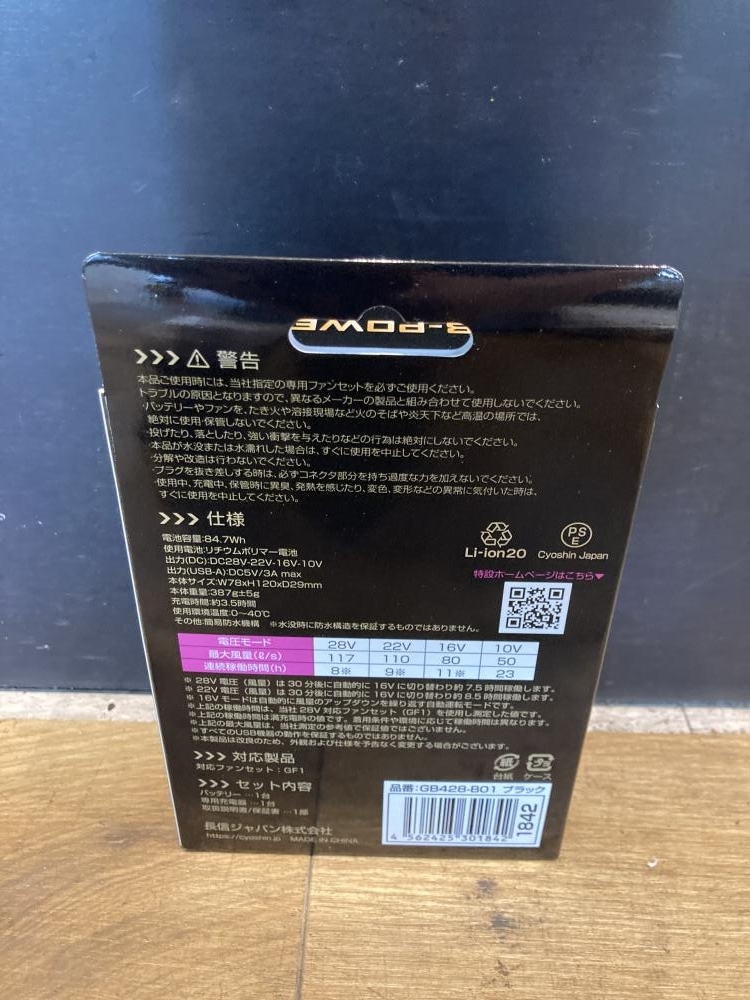 長信ジャパン ■商品名 空調服用バッテリ ■型番 GB428-B01 |