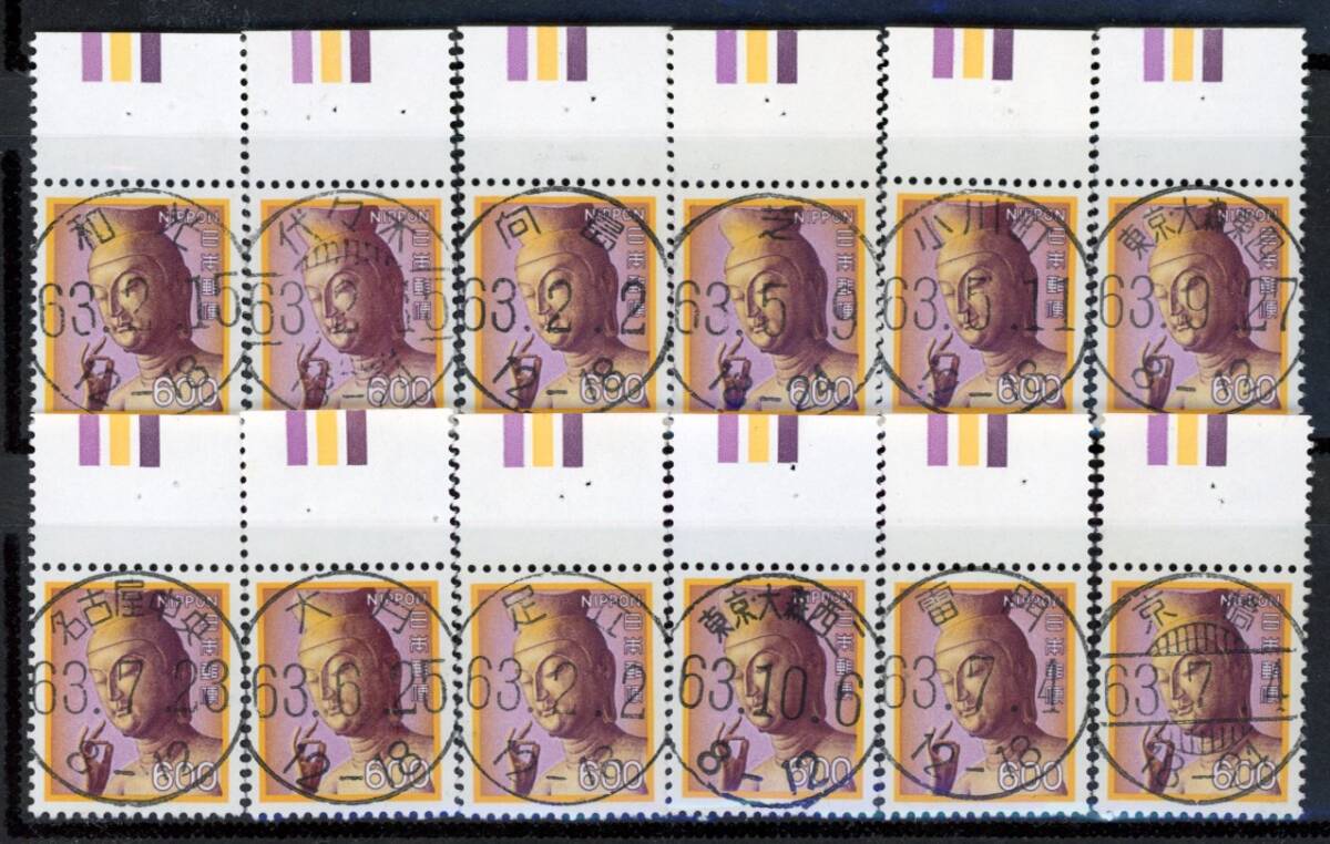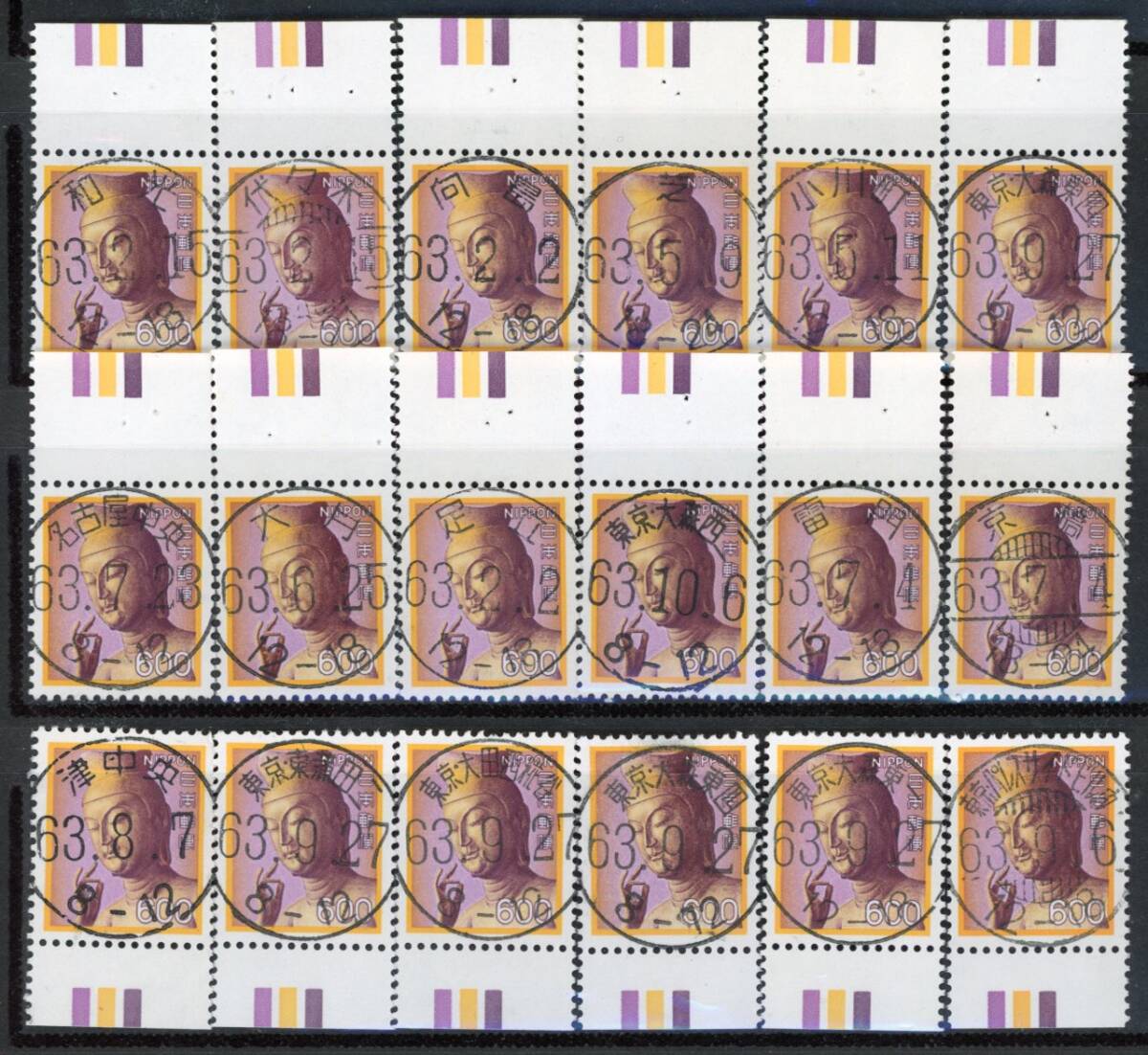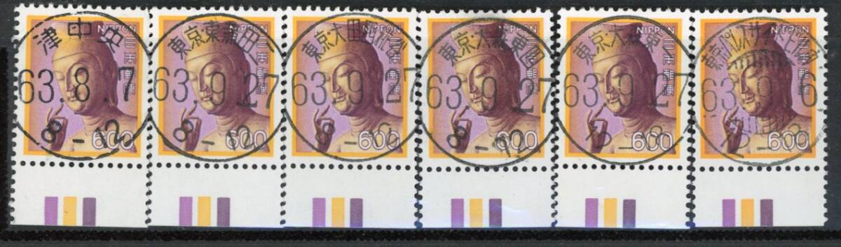 YA62 満月印 カラーマーク付 和文 普通切手 600円「広隆寺弥勒菩薩」昭和63年 使用済