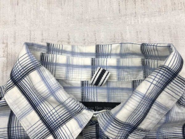 カルバン・クライン Calvin Klein Jeans アメトラ パターン オーバー チェック 総柄 胸ポケット 半袖シャツ メンズ コットン100% M 青です。