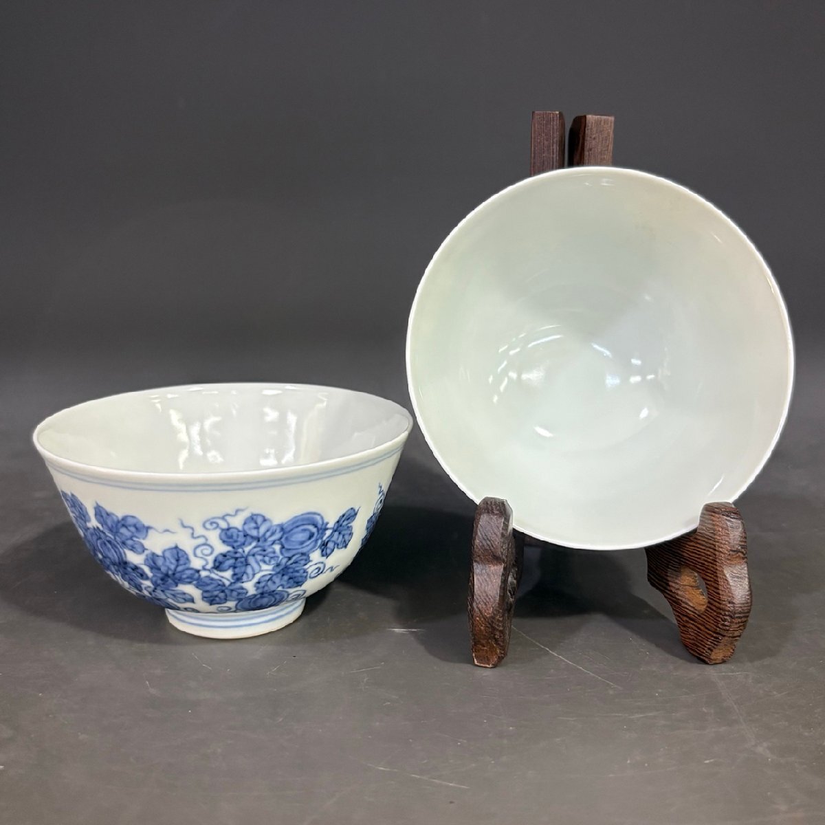 【安】明時代 大明成化年製 青花西瓜紋杯一対 共箱 唐瓷 染付 古陶瓷 中国古美術 古董品 260 サイズ(約寸) |