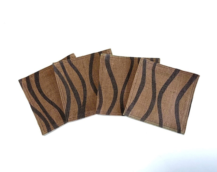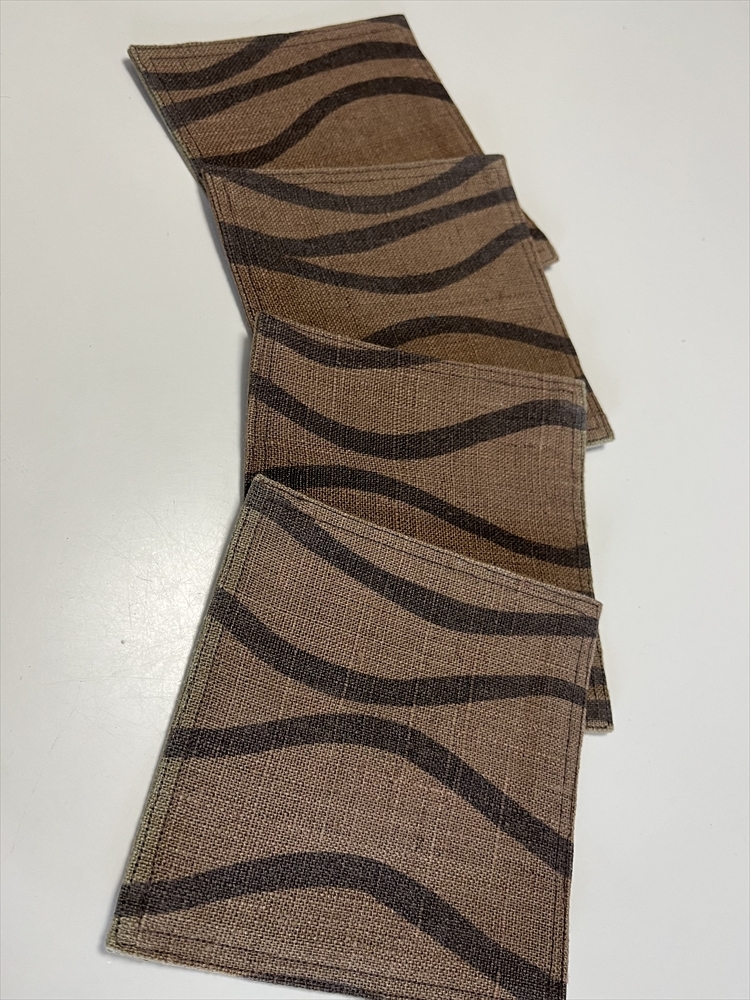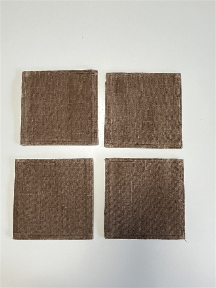 花とら●リサイクル小物 麻 コースター 4枚まとめて 未使用品 美品 茶 立涌 幡   251013