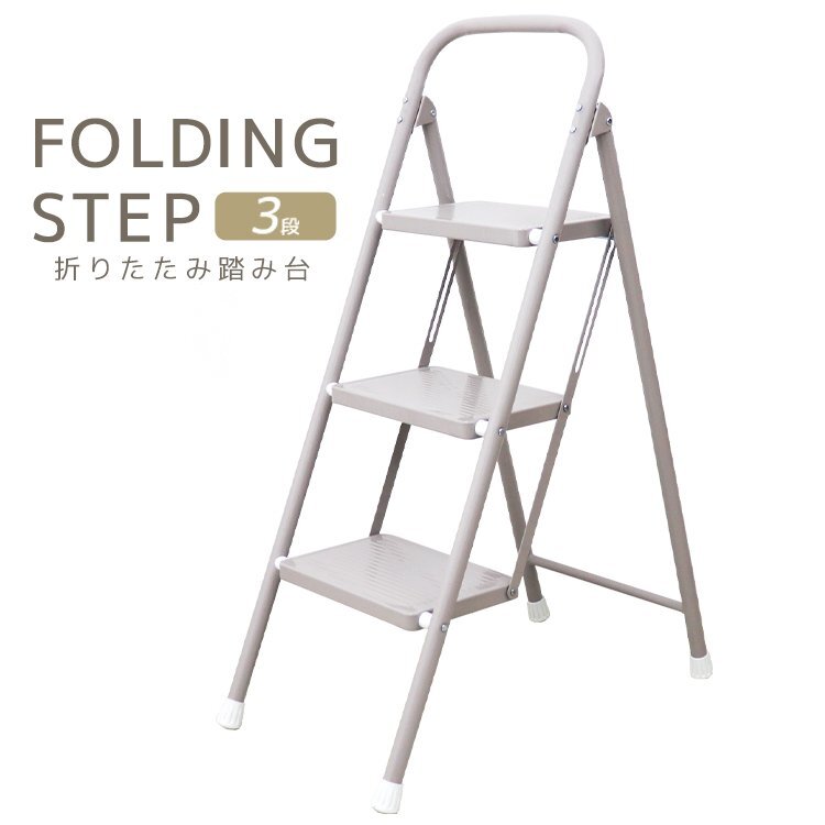 新品未使用 折りたたみ ステップ台 脚立 3段 耐荷重150kg 滑り止め加工 コンパクト ステップスツール 踏み台 おしゃれ はしご 掃除