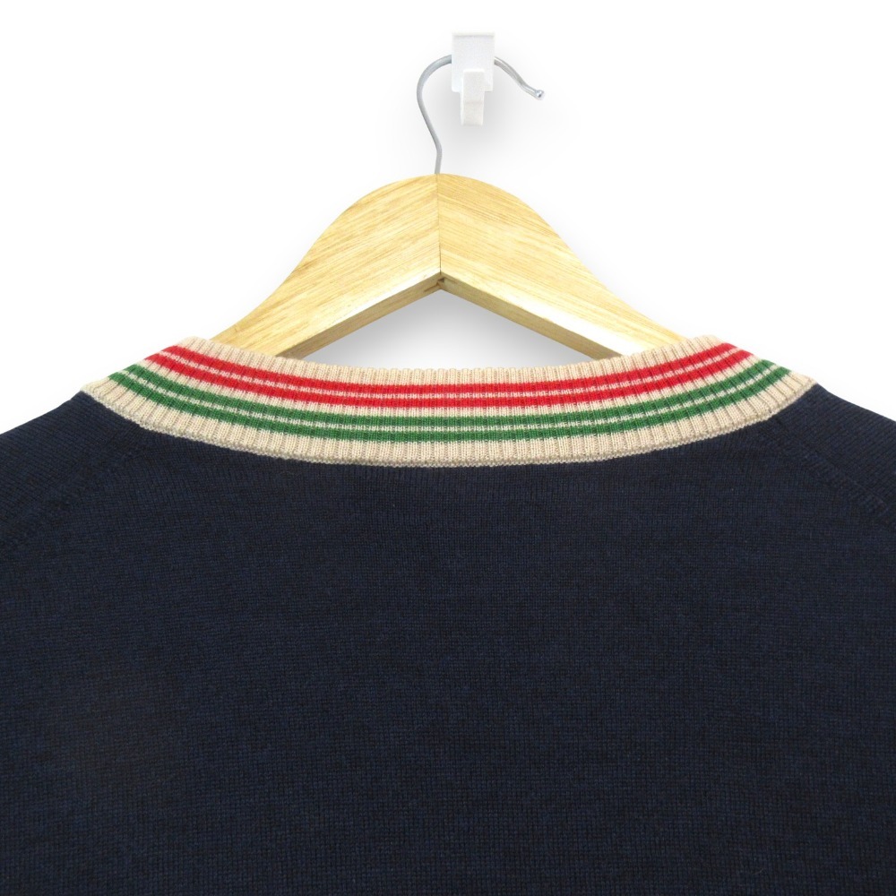 美品 GUCCI グッチ ウェブディテールニット セーター 599917 Sサイズ ネイビー