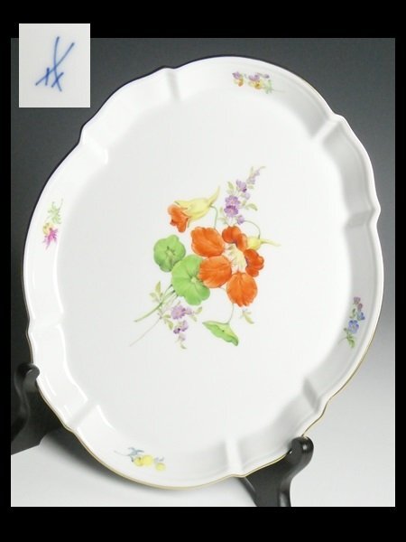 マイセン Meissen ハンドペイント フラワーブーケ オーバルプレート 大皿 28.5cm N785
