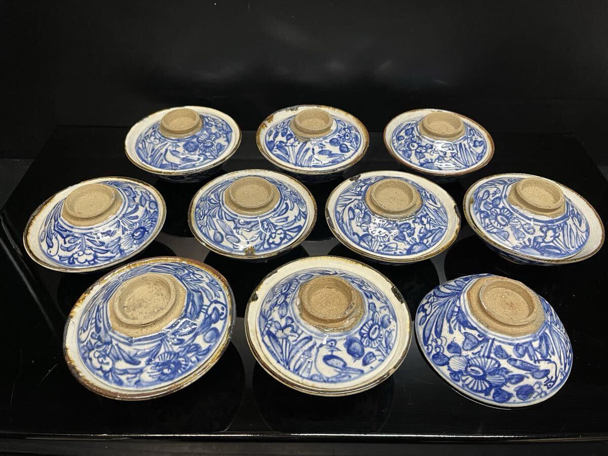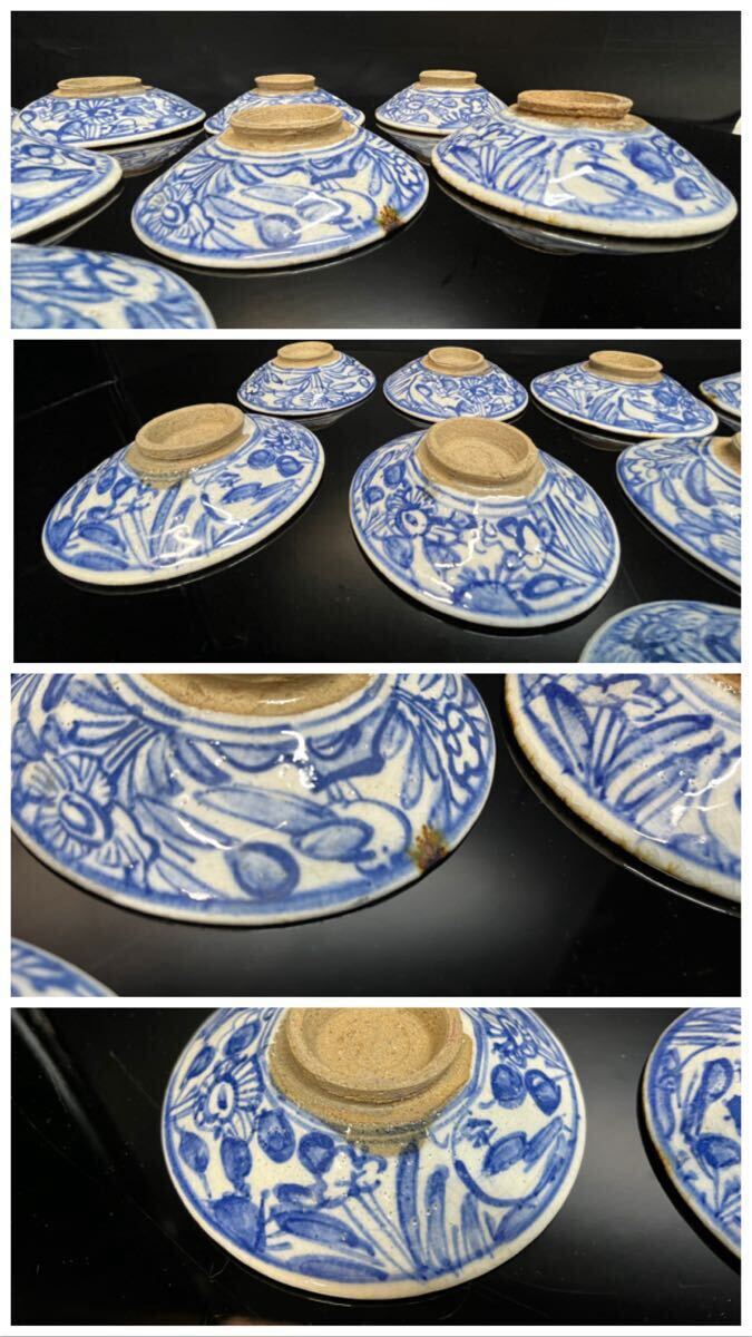 時代物/古染付/青華/蓋茶碗/蓋付き碗/茶碗/刻印/仁清 ?/料亭/骨董/和食器