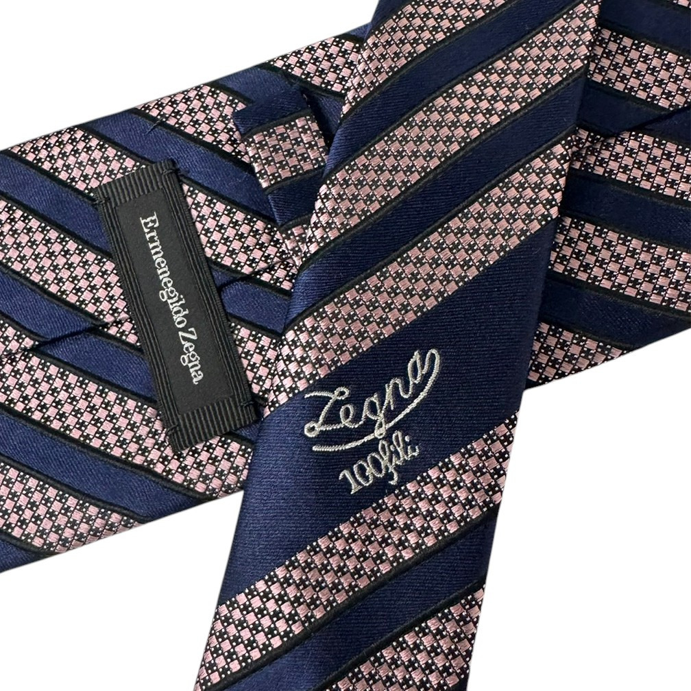 ゼニア ブランド ネクタイ エルメネジルド・ゼニア 高級 シルク 100% ストライプ ピンク ネイビー アウトレット