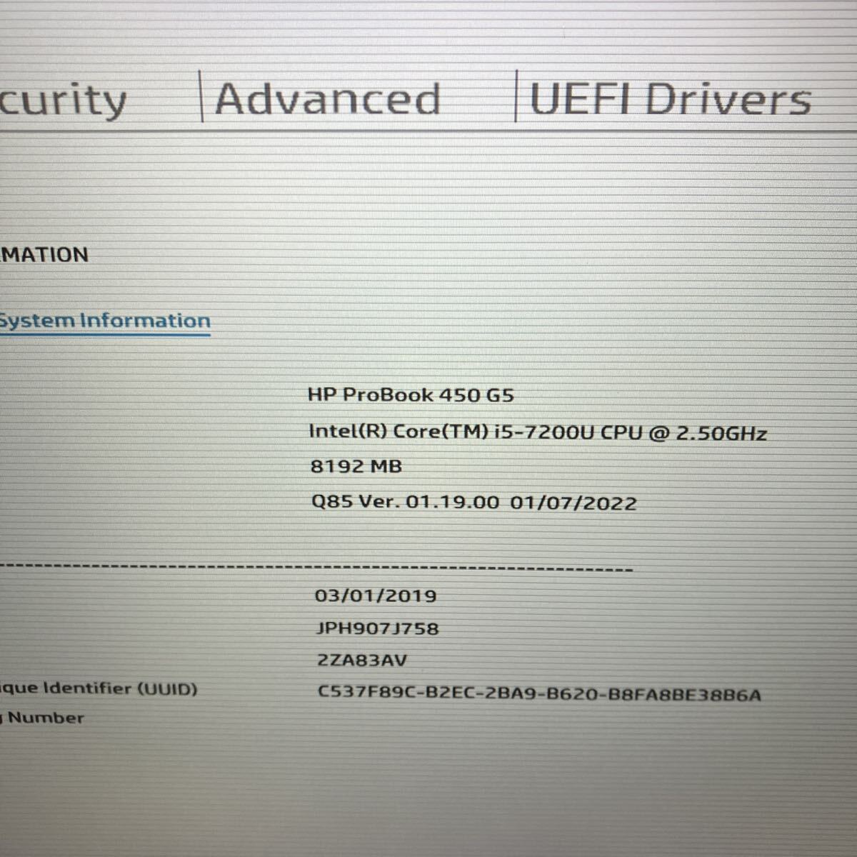 ★型番……………………ProBook 450 G5
