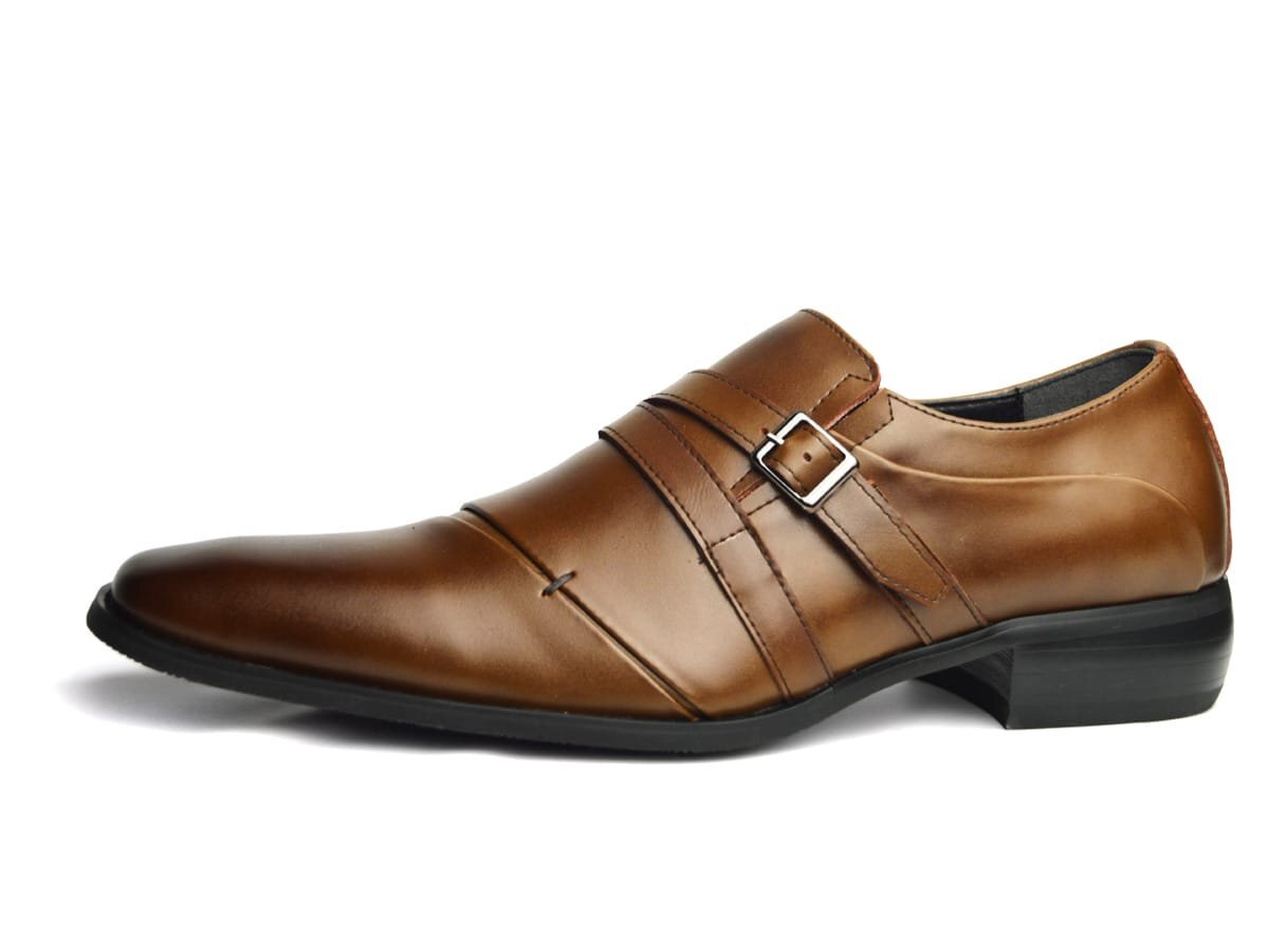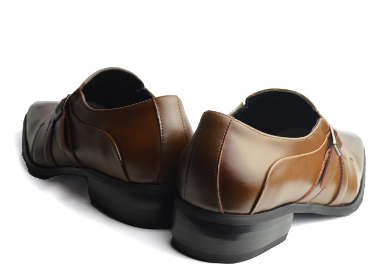 ビジネスシューズ 革靴 サイドゴア スリッポン Wモンク 脚長 スクエアトゥ ロングノーズ 2E 日本製 フォーマル 紳士靴 nc902