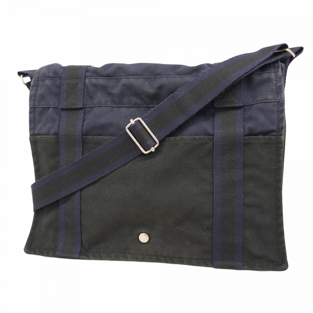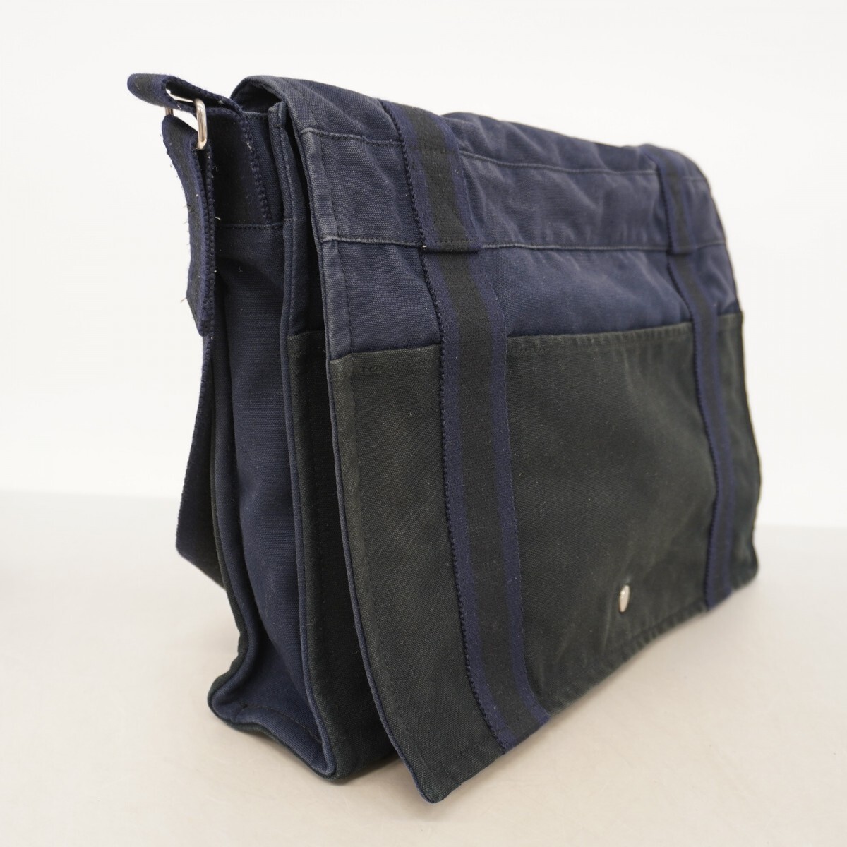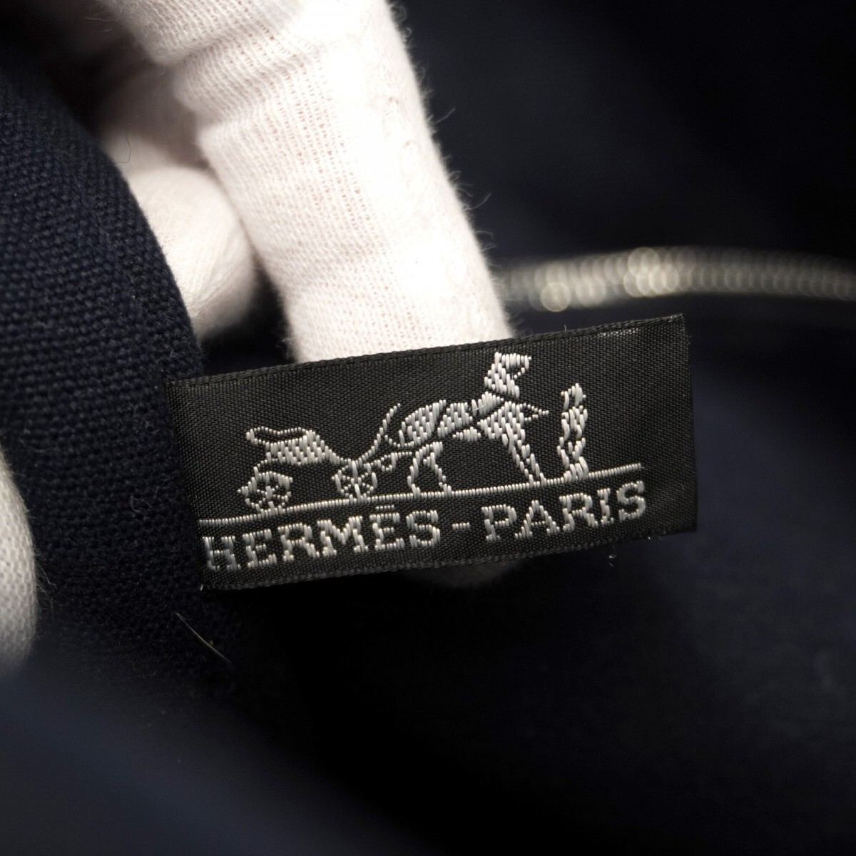【5md5103】エルメス ショルダーバッグ フールトゥバサスMM キャンバス ネイビー ブラック シルバー金具【中古】レディース