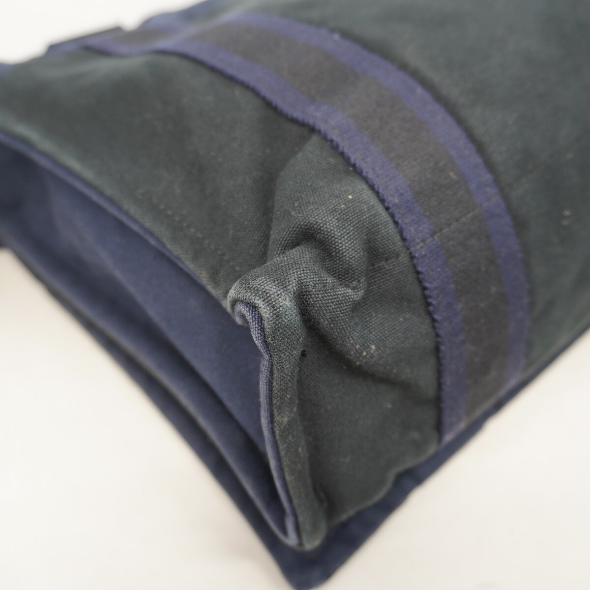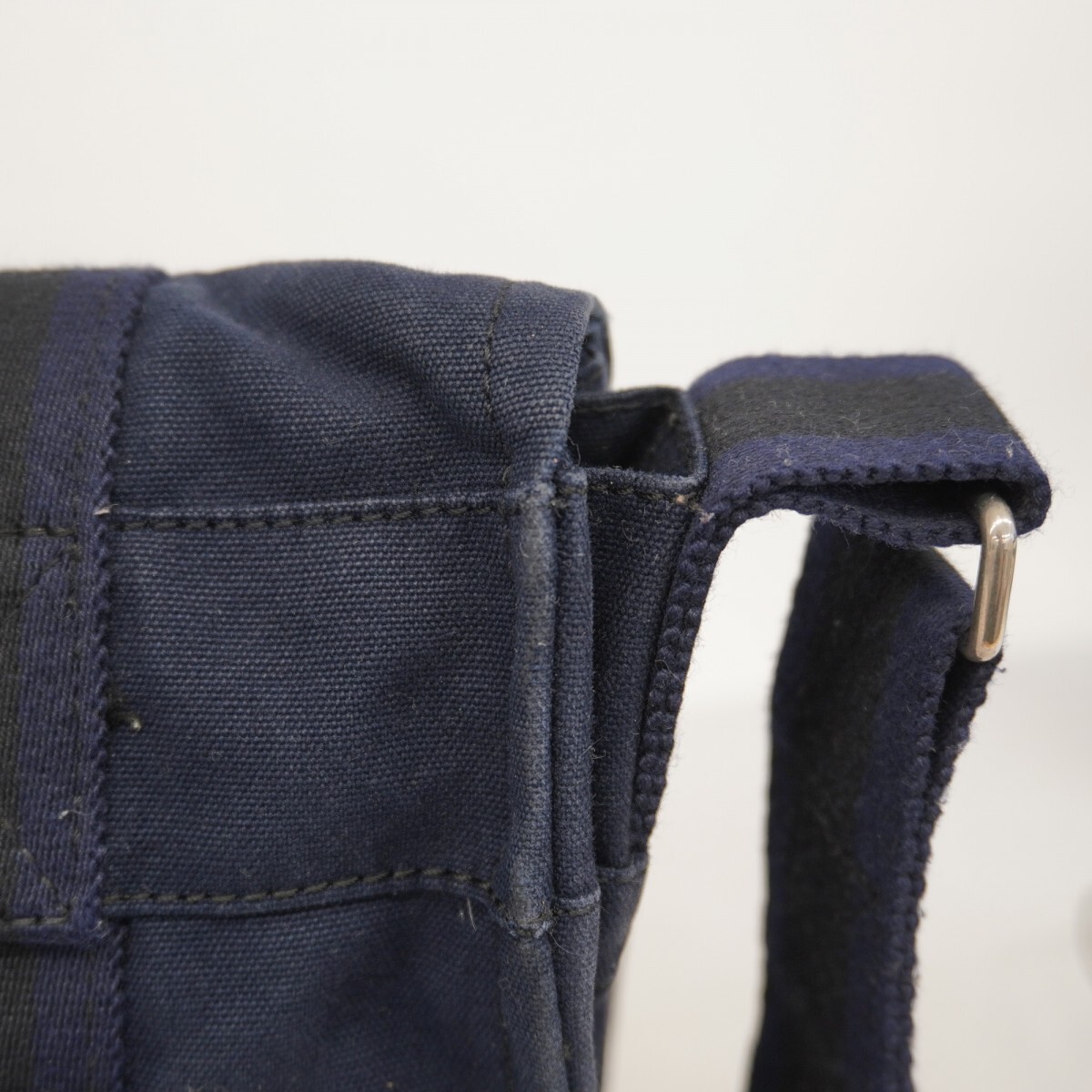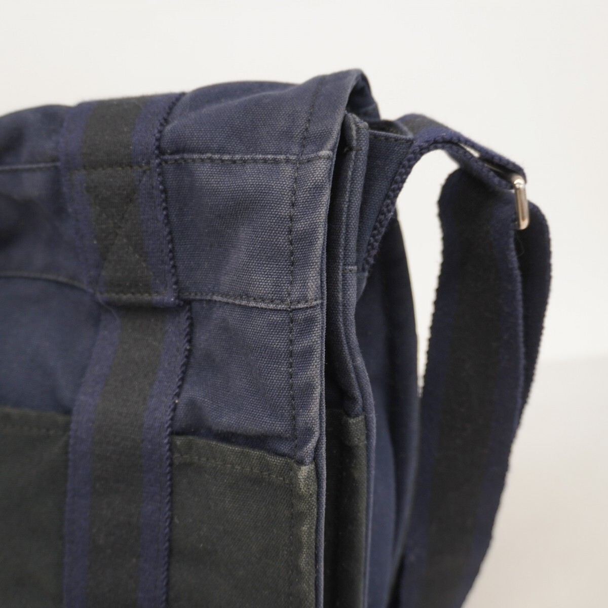 【5md5103】エルメス ショルダーバッグ フールトゥバサスMM キャンバス ネイビー ブラック シルバー金具【中古】レディース