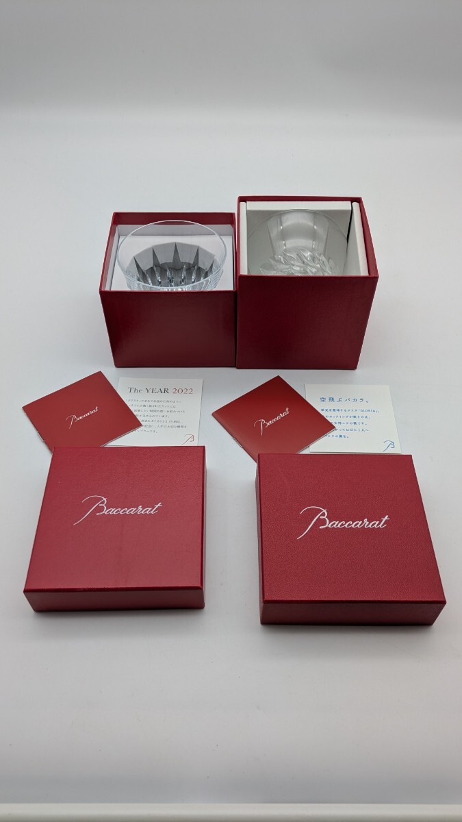 △【500円スタート】 Baccarat ロックグラス 2個セット バカラ グラス クリスタル 箱付 2016/2022刻印有 GLORIA