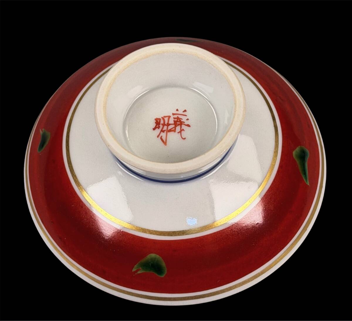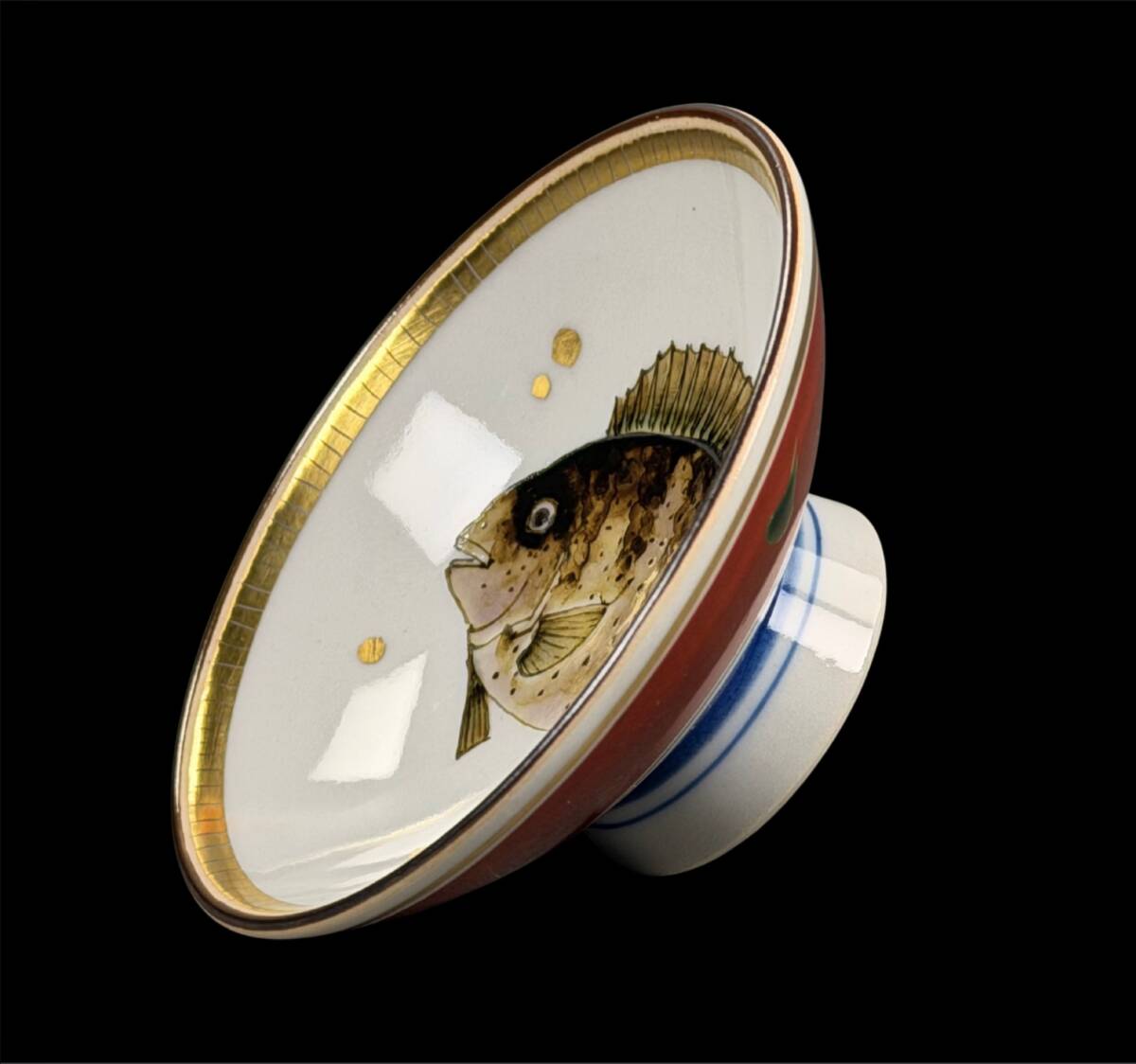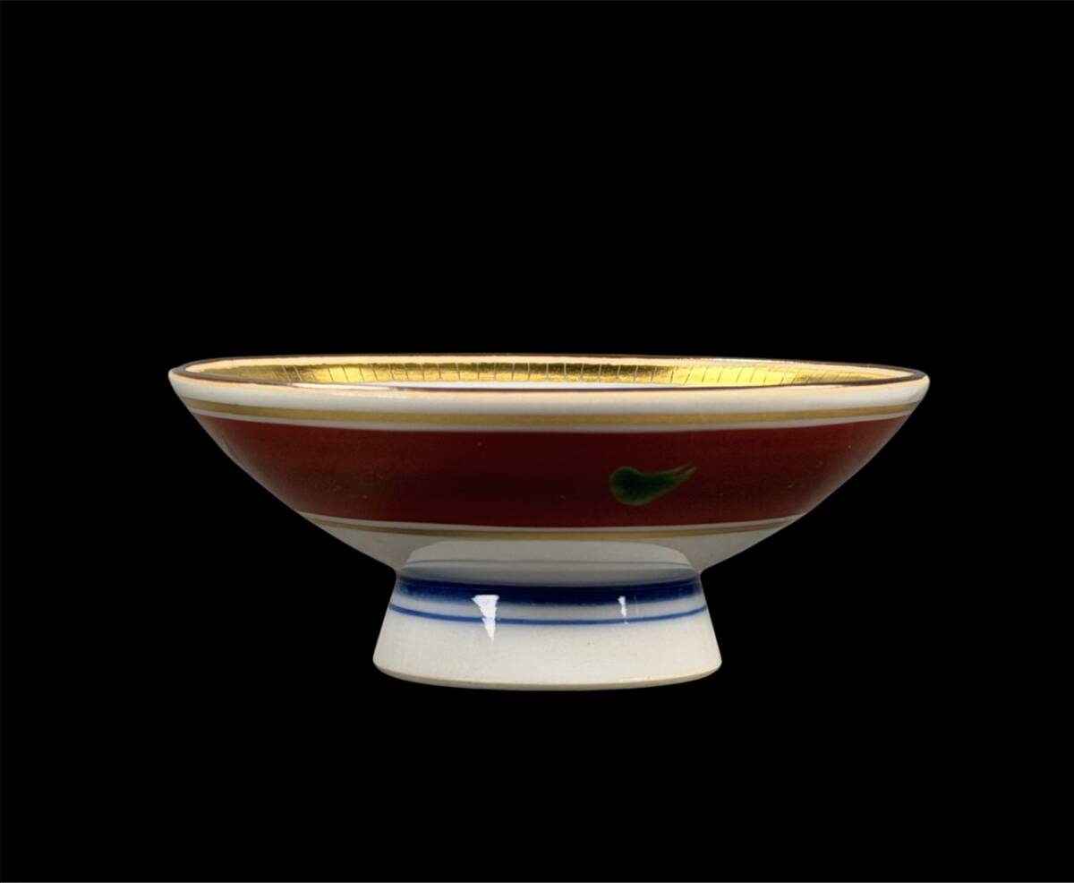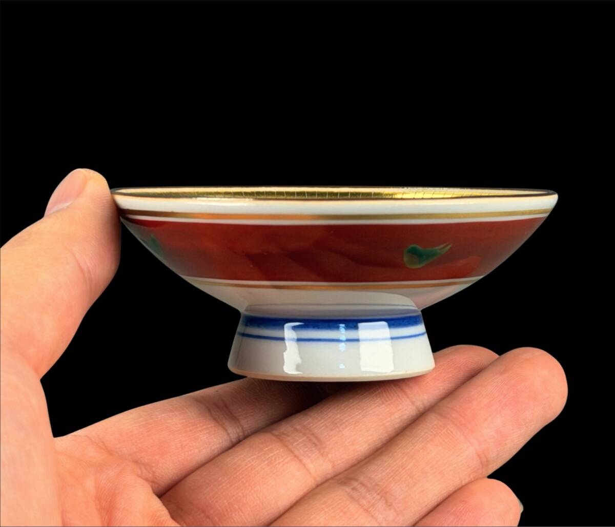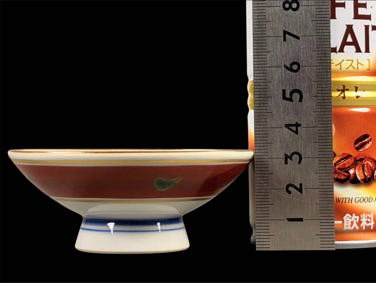 【偲】九谷焼 山田義明 高台盃 色絵 酒盃 酒杯 盃 酒器 共箱 高さ約3.3㌢ b-57