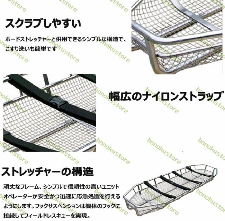 【商品詳細】●状態:新品未使用【バスケット担架】このバスケットストレッチャーの構造は、険しい山、空中または海の救助などの応急処置の詳細に焦点を当てています。 フックは航空機のフックに接続することができ、調整可能な足の安全機構、シートベルトなどが装備されてい