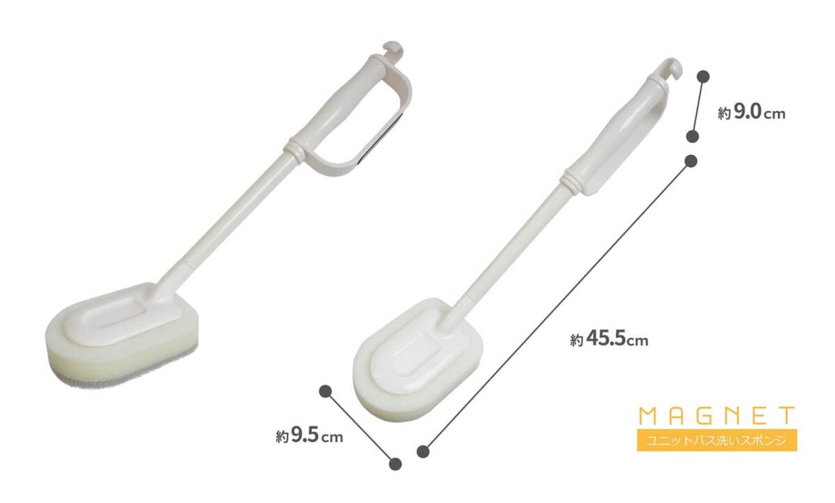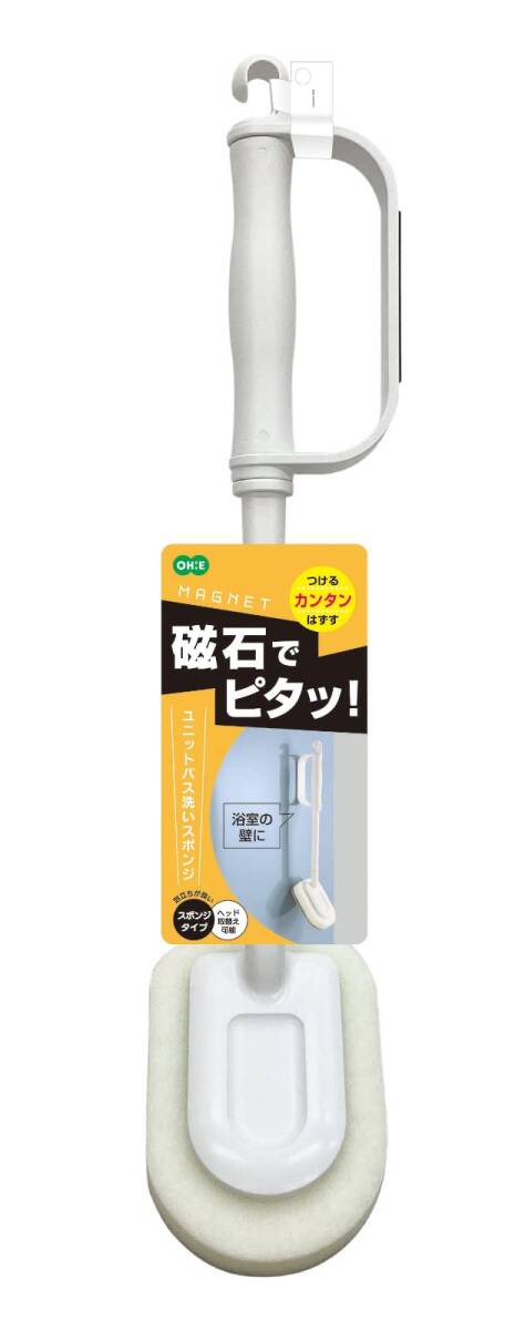 オーエ バスブラシ 長さ45.5×幅9cm×高さ9.5cm マグネットユニット バス洗いスポンジ 磁石 風呂掃除 ホワイト