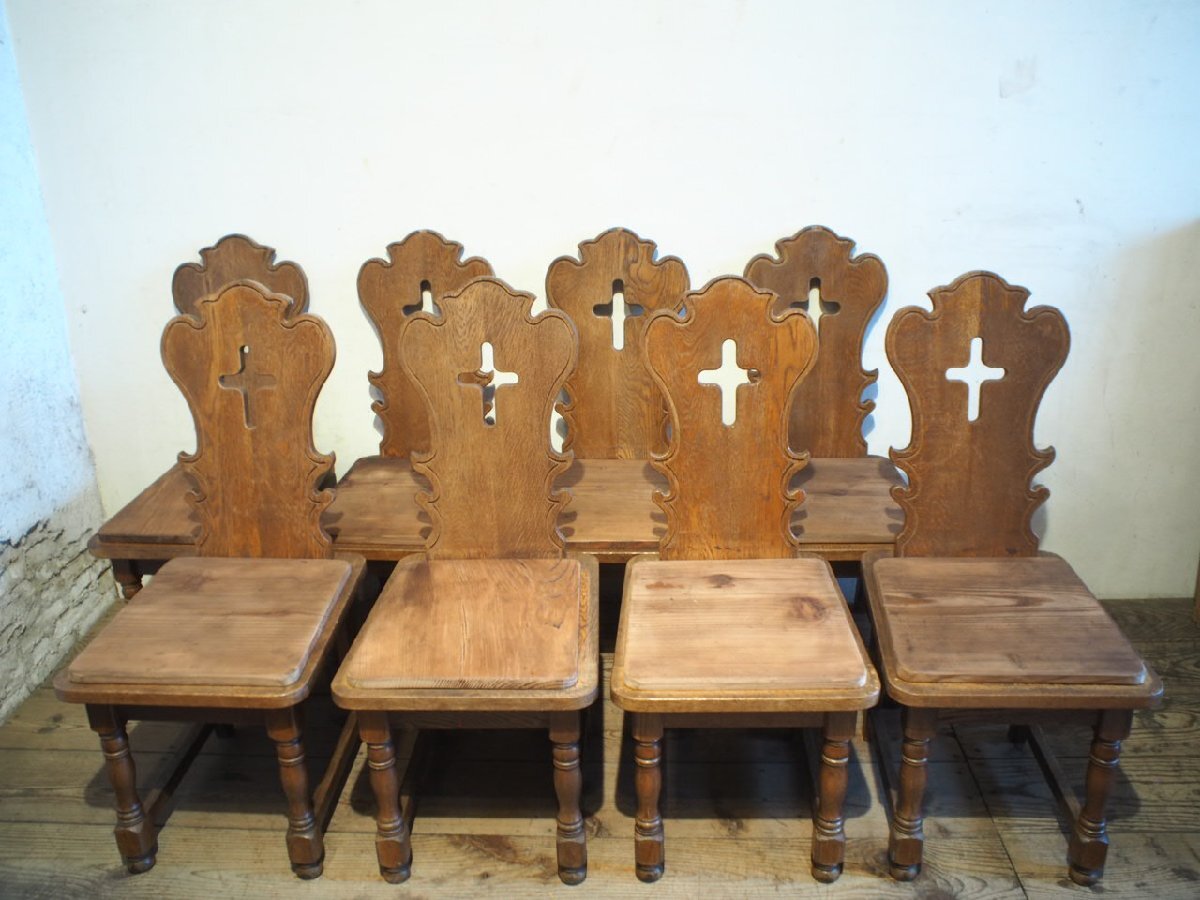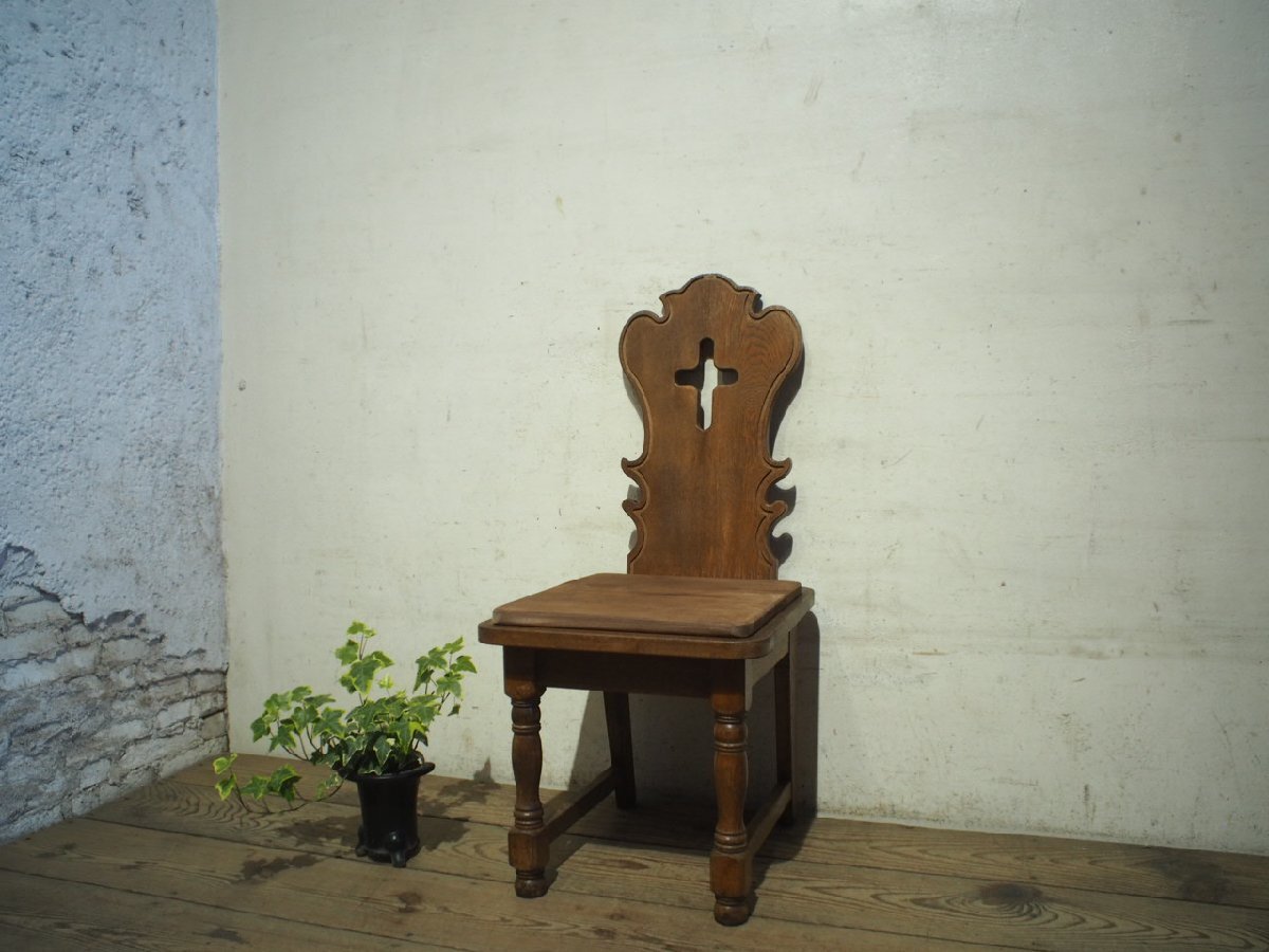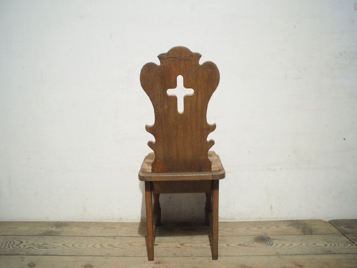 タF0963◆⑧可愛いデザインのレトロな古い木製ダイニングチェア◆椅子 イス カフェ 喫茶店 教会 チャーチチェア 店舗什器 ビンテージL笹1