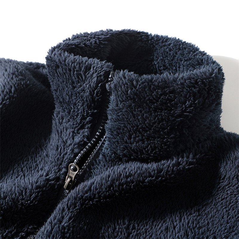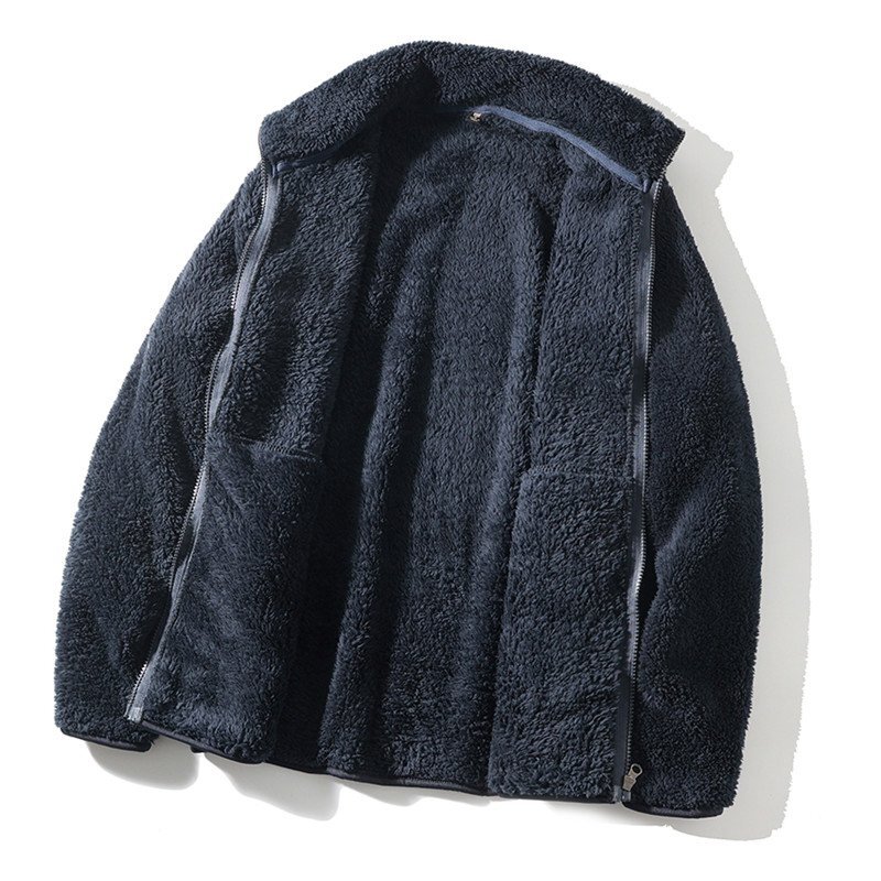 新品 国内未販売 フリースジャケット デザイナーズ 秋冬 ストレッチ カジュアル スタンドカラー 暖かさ 裏ボア 厚手 柔らかい メンズ 無地 カーディガン 快適 アウター 濃紺 T4151-2XL