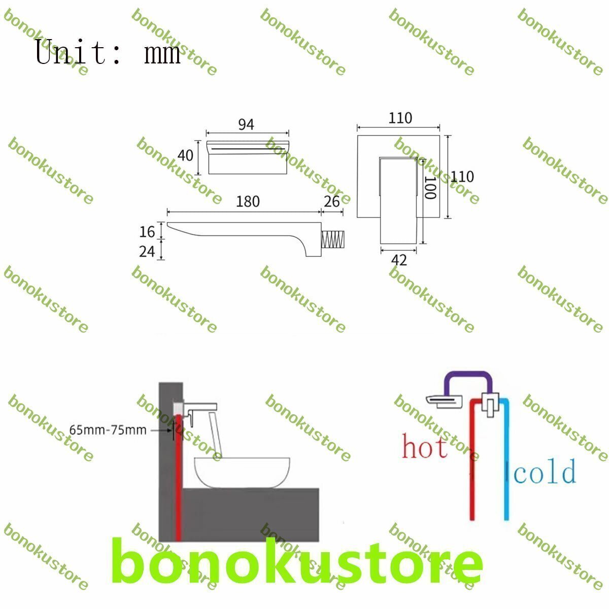 商品説明 商品の説明 特徴: タイプ: 滝型壁掛け式バスミキサータップ 材質: 真鍮 取り付け穴: 2 穴 ハンドル数: シングルハンドル 取り付け方法: 壁掛け 色: 黒 給水: 冷水と温水 バルブコアタイプ: セラミックバルブコア 蛇口パラメータ: ノズル幅: 94mm ノズル長さ: 180mm