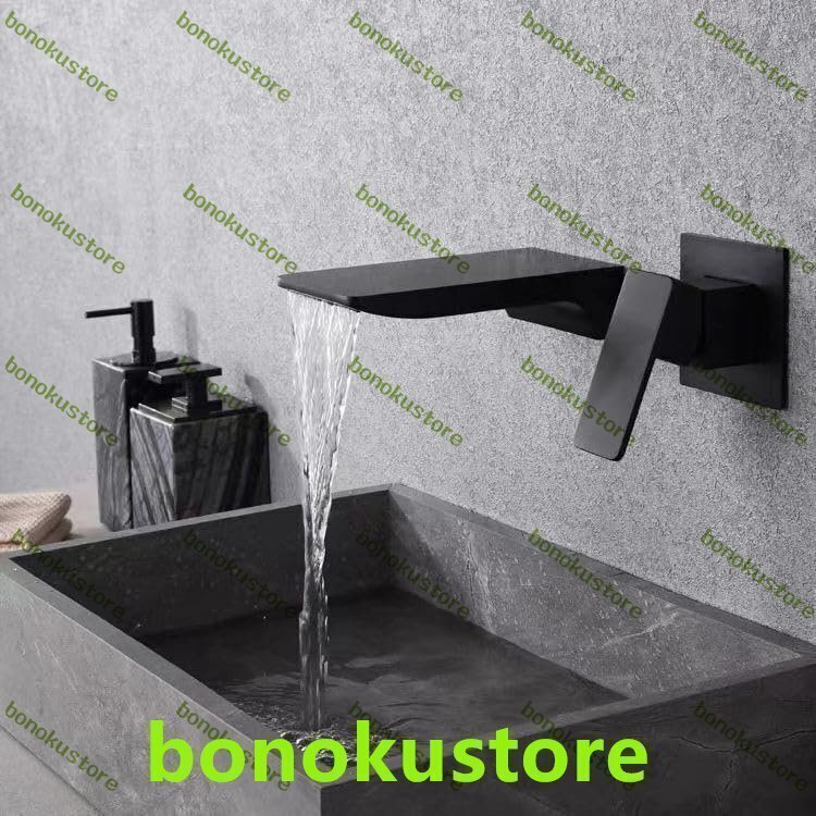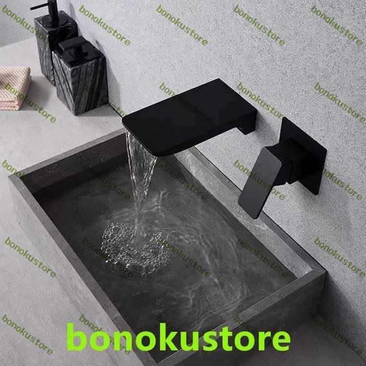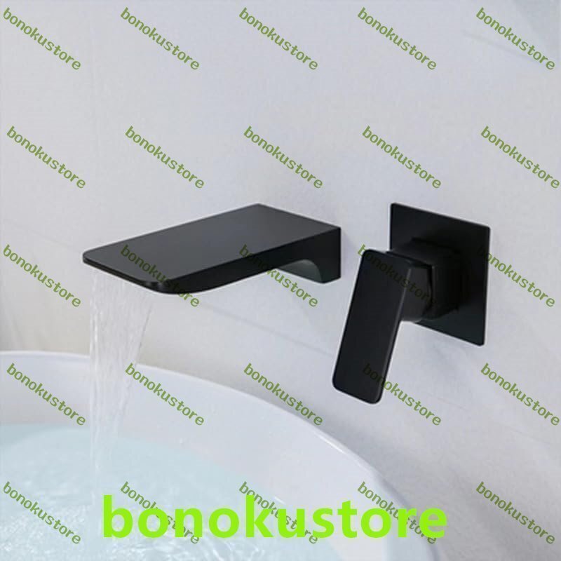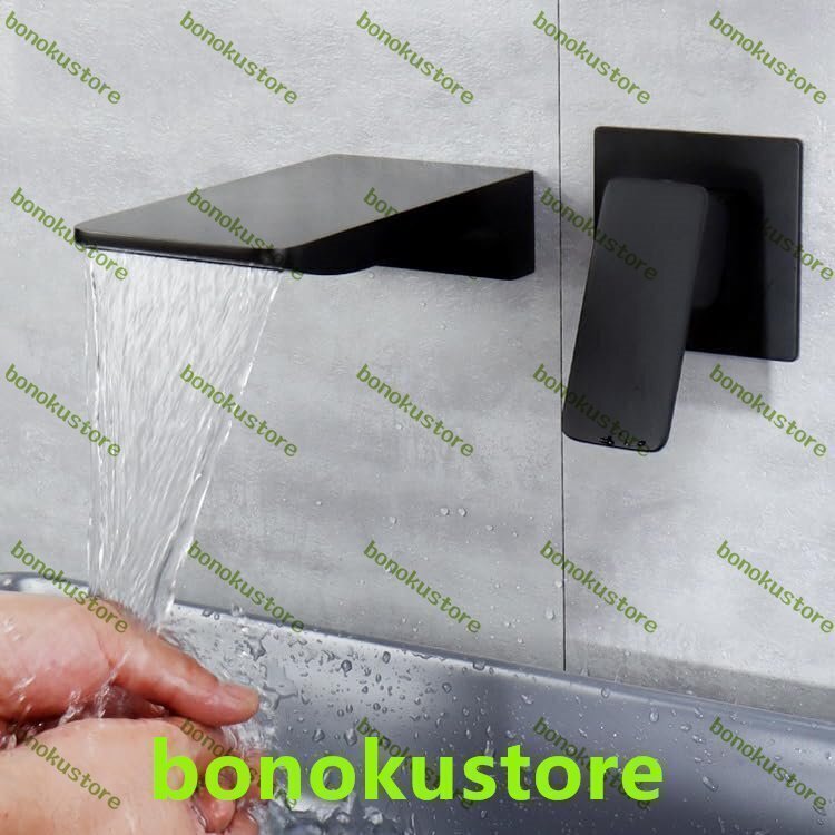 壁取り付け式洗面台用蛇口 真鍮製 ブラック 滝型蛇口 浴室シンク用 ミキサータップ シングルレバー 2穴ミキサータップ 浴室シンク用