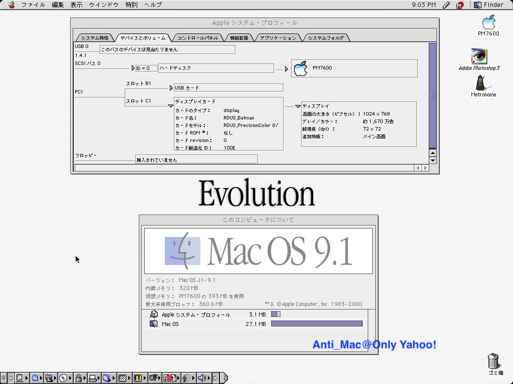 PowerMac7600 OS9.1 OS標準ドライバー で作動確認済み(画像8、9)。
