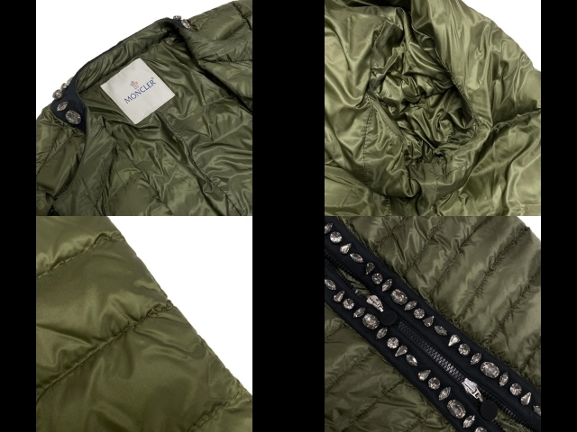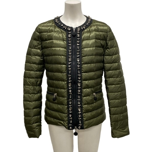 モンクレール MONCLER ダウンジャケット サイズ1 S VUILLARD ナイロン、ダウン カーキ×黒 レディース 長袖/ビジュー/冬 ジャケット