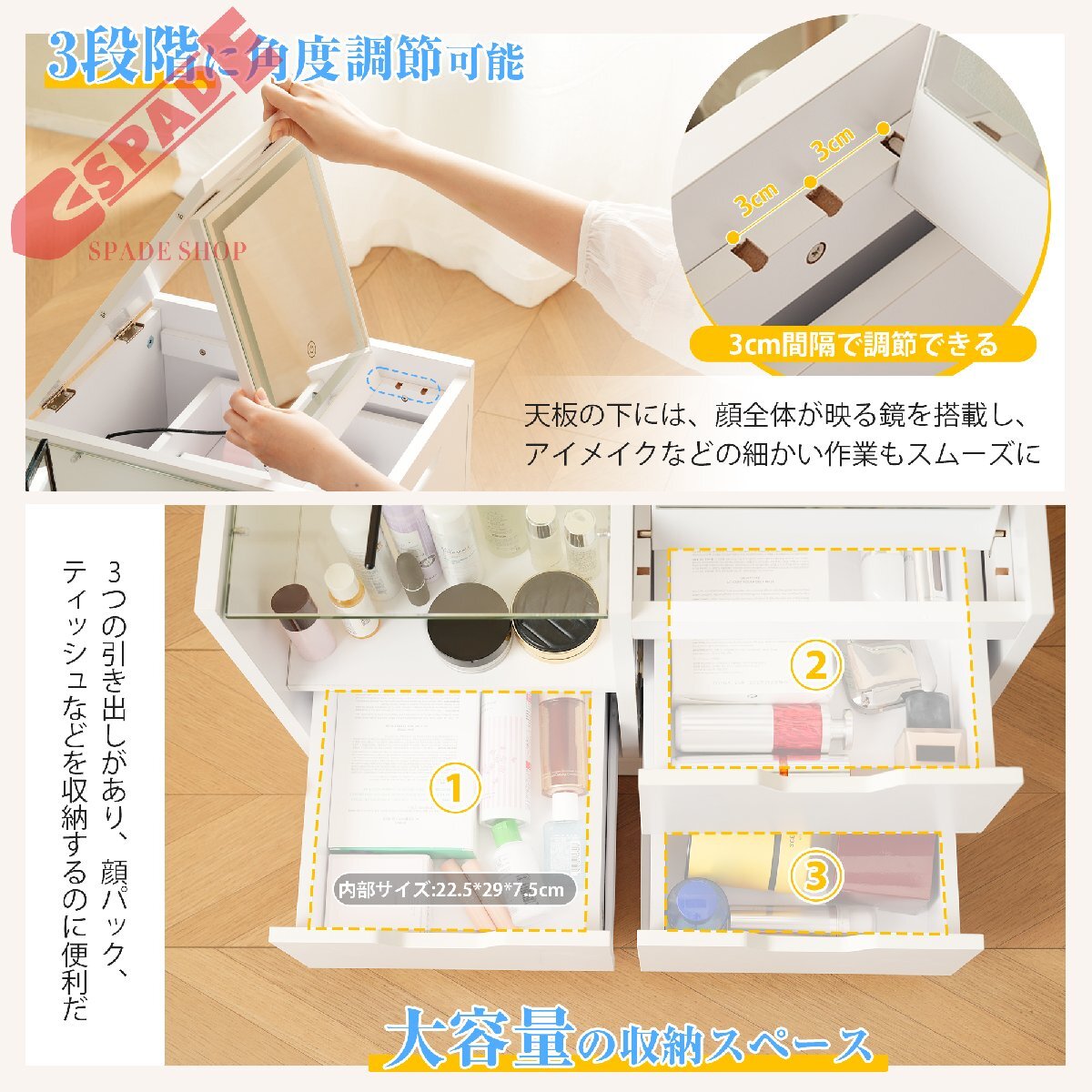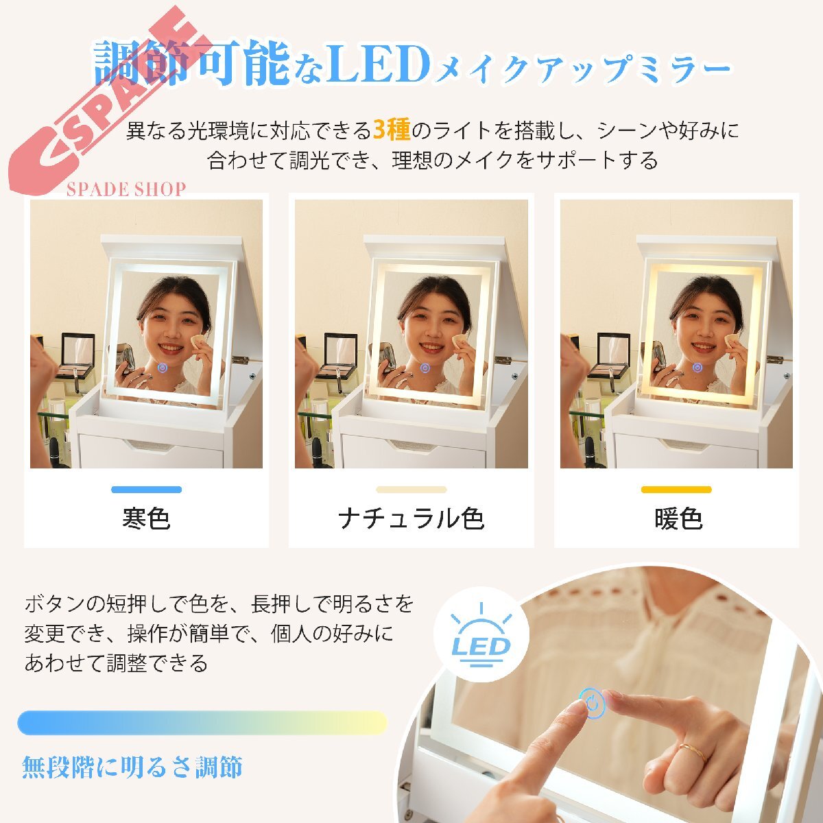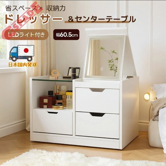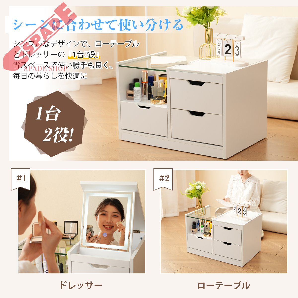 【国内発送】ドレッサーテーブル ドレッサー化粧台 リビングテーブル 3色LED テーブル 鏡台1台2役 ライト付き し機能 収納大容量 可愛い