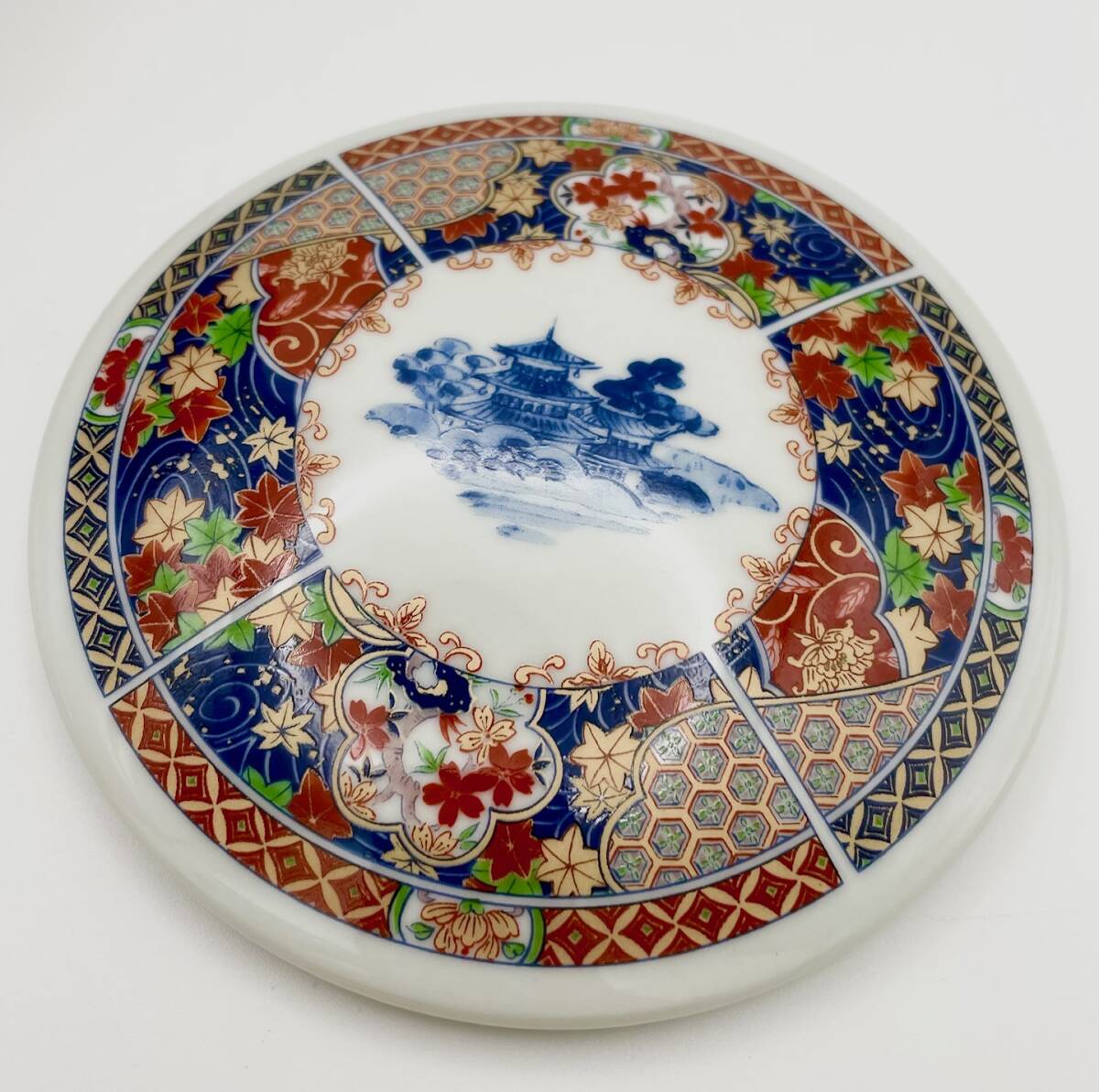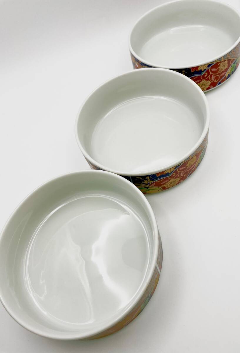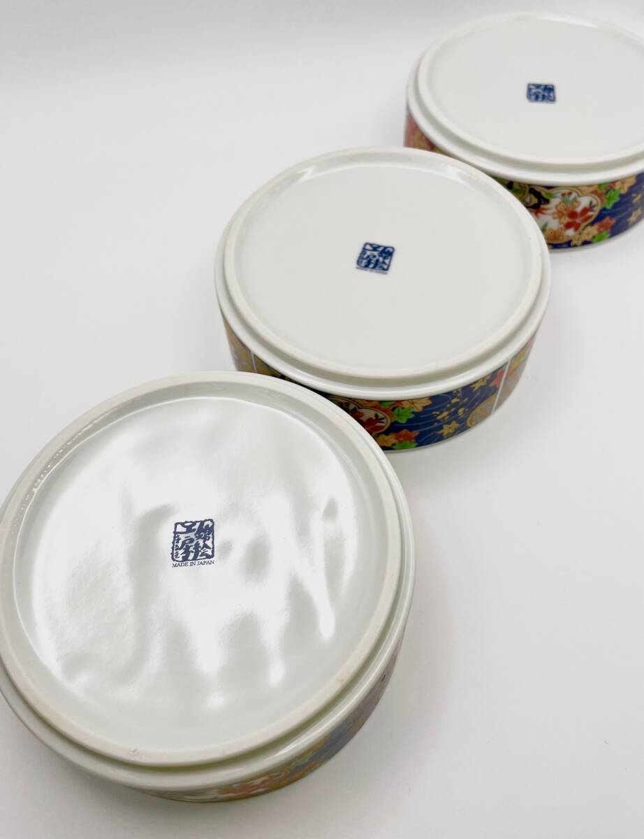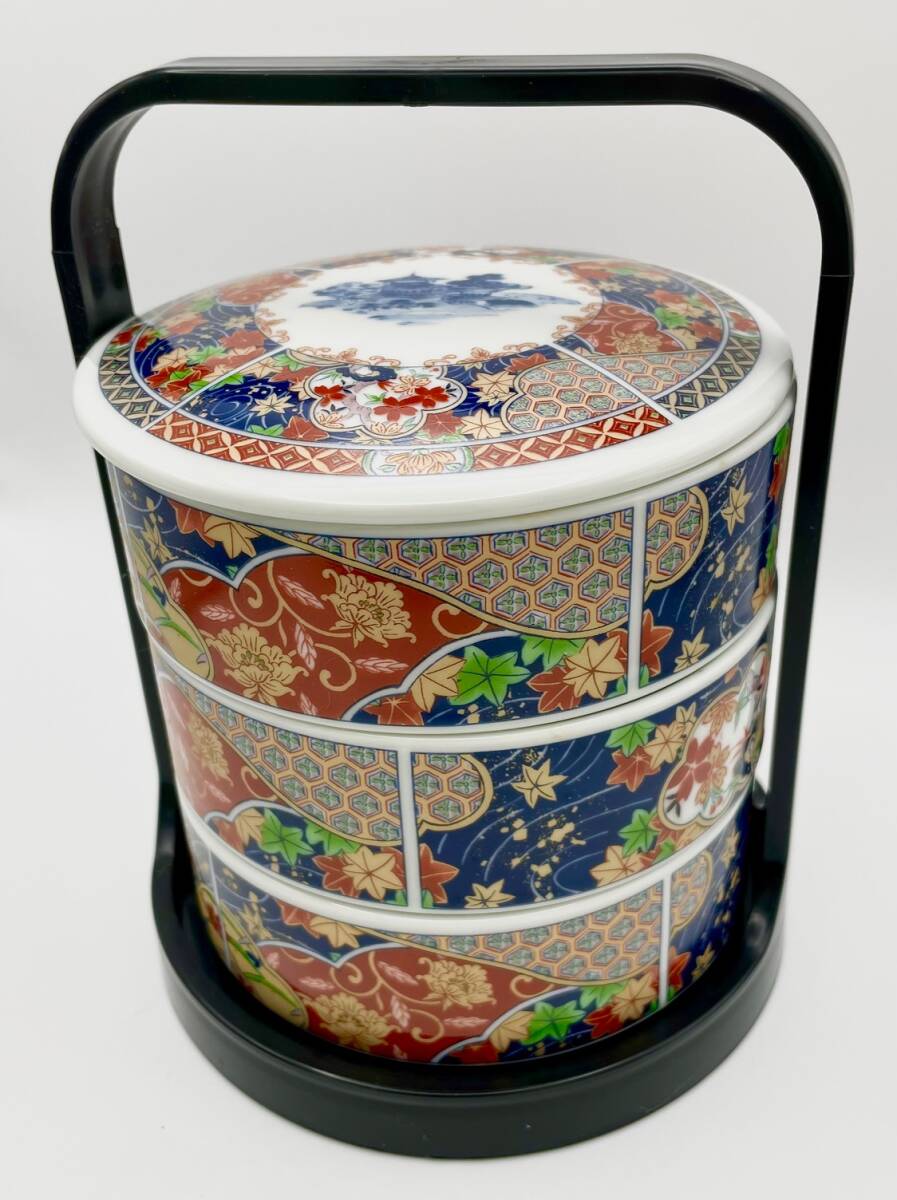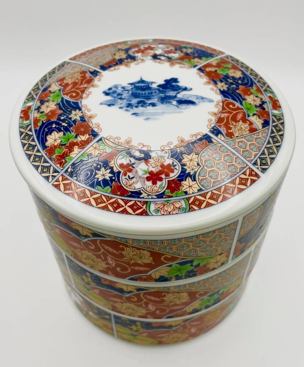 FK2494【未使用】1円スタート 三段重 4寸 有田焼 手提付 箱あり 錦絵工房 まるき 重ね鉢 陶器 和食器 重箱 レトロ 当時物