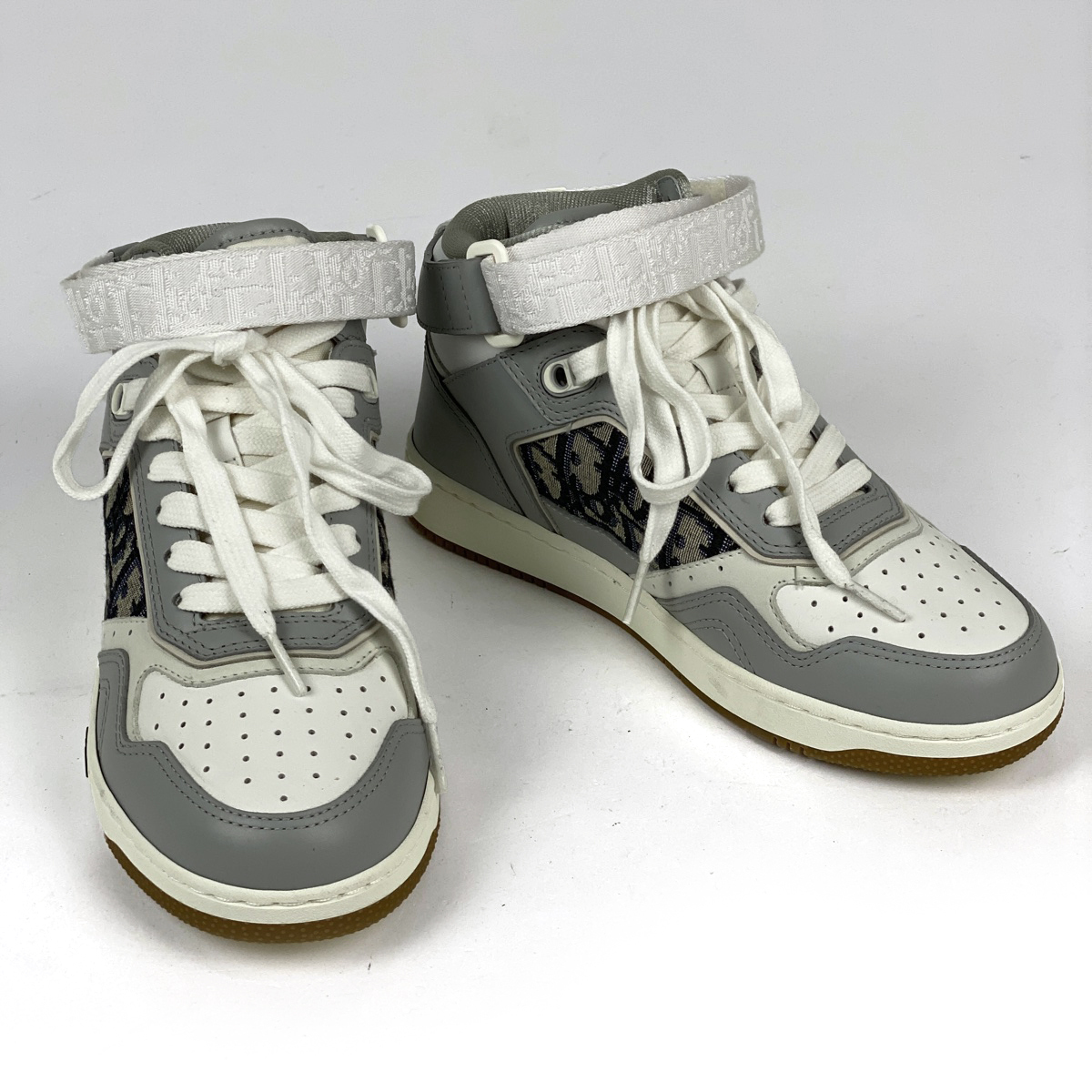| クリスチャンディオール Christian Dior ロゴ スニーカー トロッター柄 ハイカット スニーカー レザー キャンバス ホワイト グレー レディース 【中古】 |