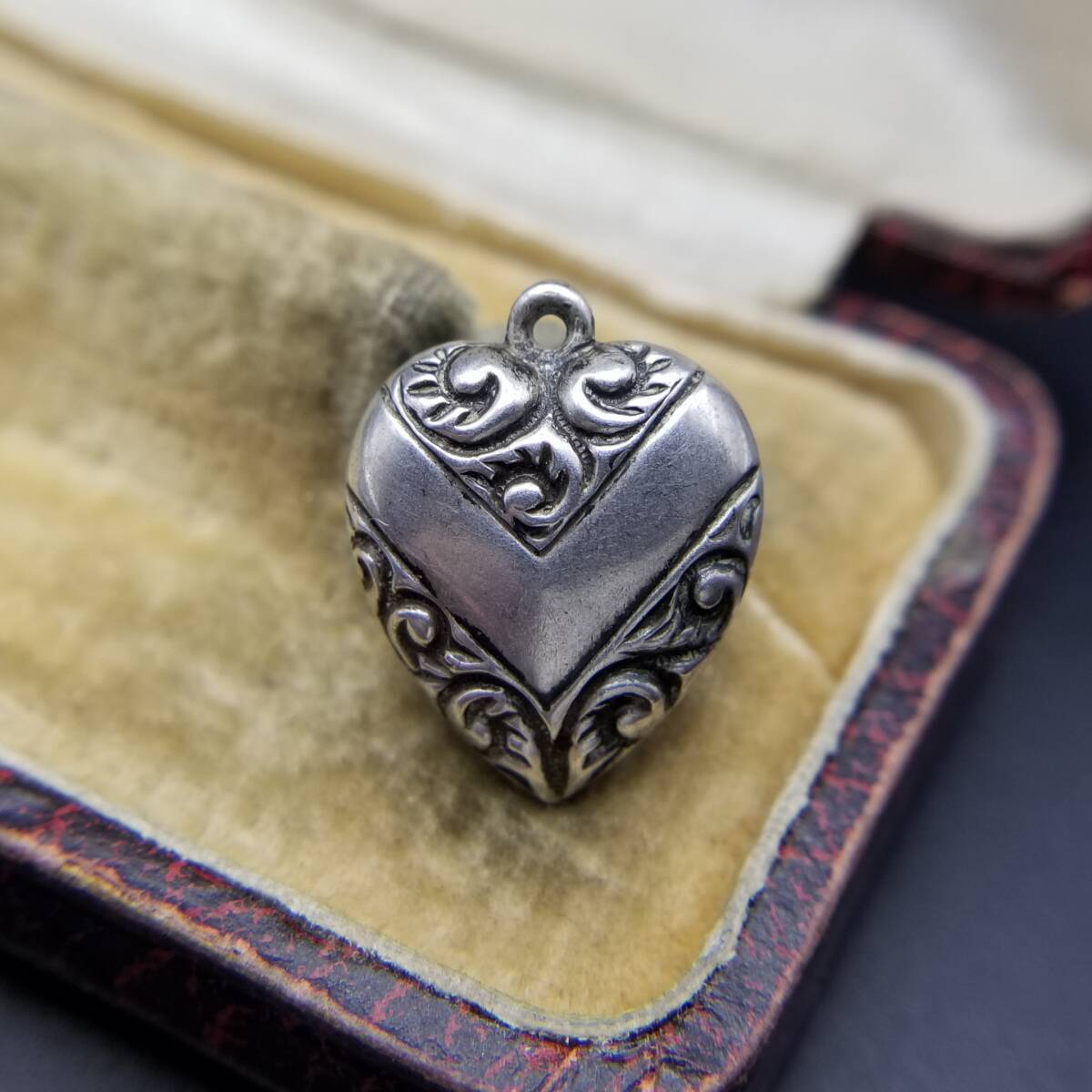 WWII期 ヴィンテージ スウィートハートジュエリー 唐草模様 V字 チャーム 925 シルバー ペンダントヘッド 銀 リバーシブル Y25-E
