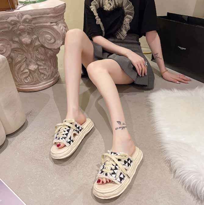 ・アッパーの素材はキャンバス生地で、一見スニーカーにも見える紐つきデザインがオシャレな1足。