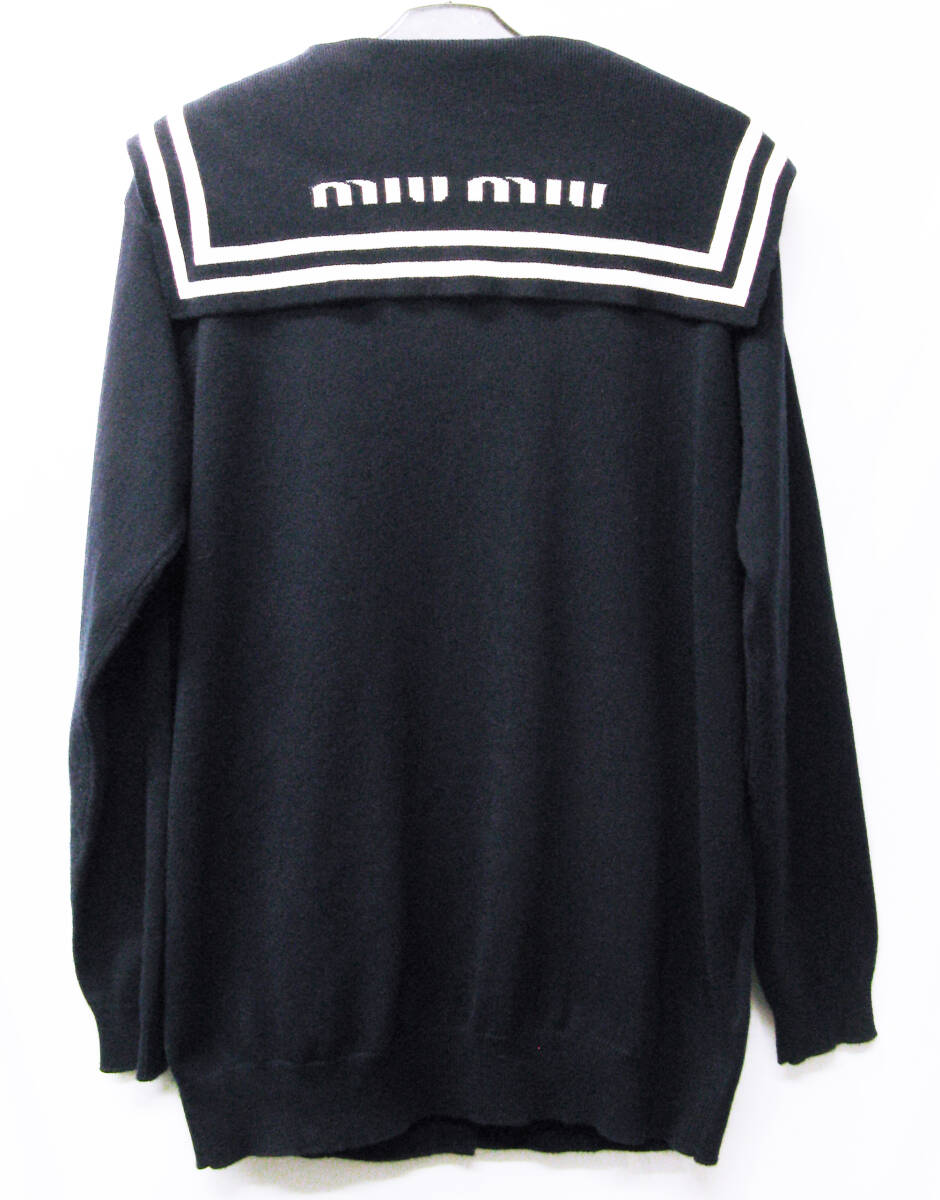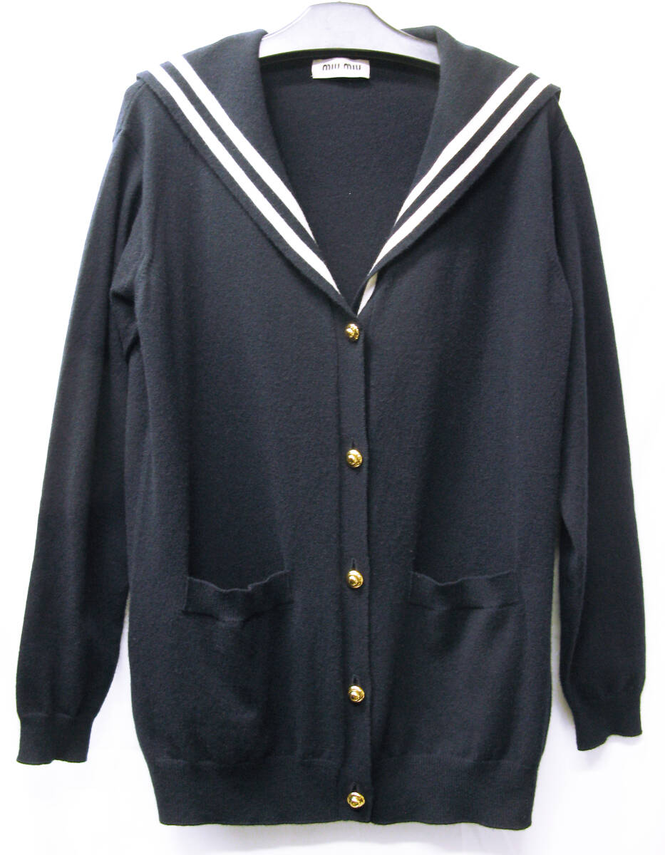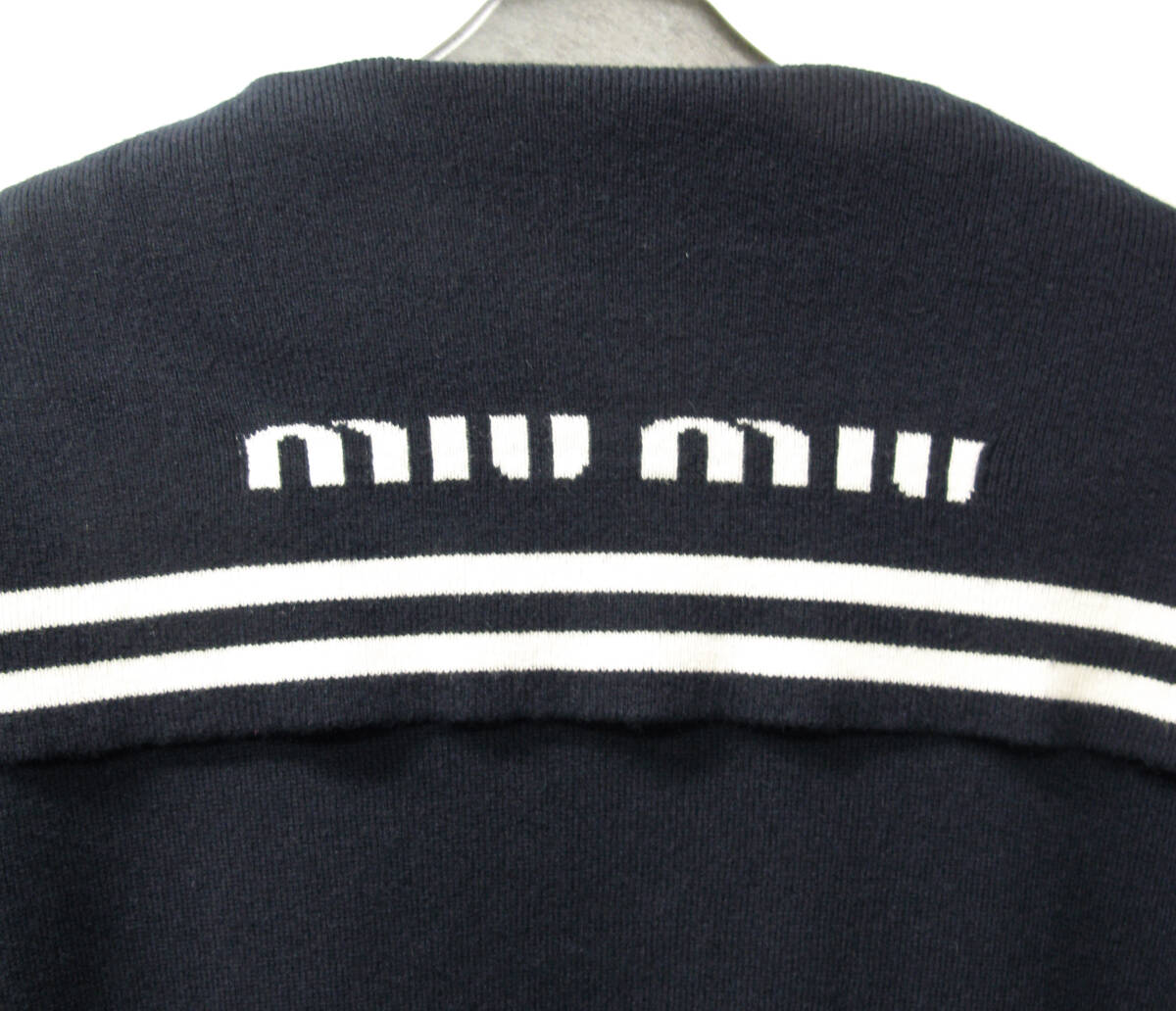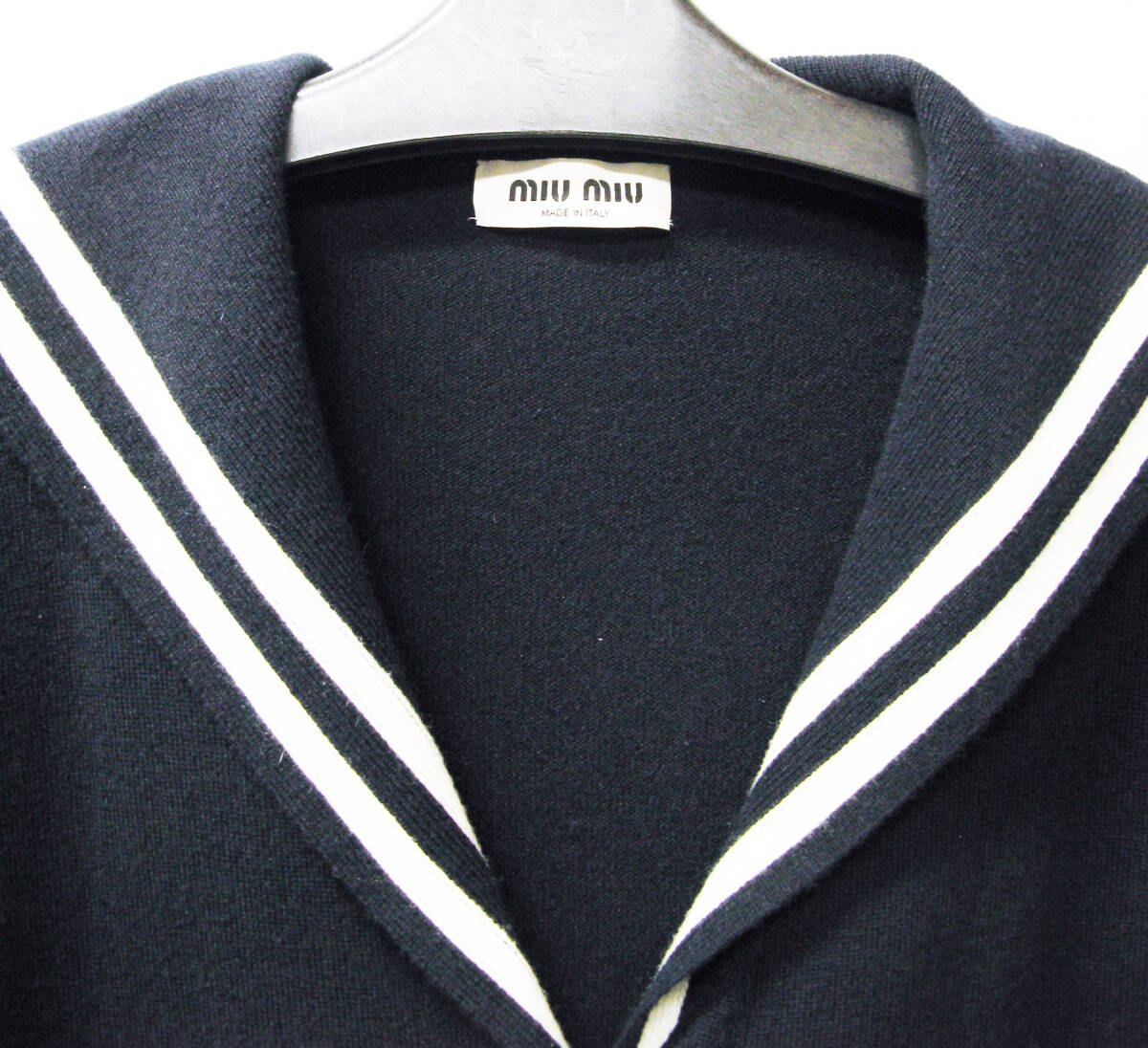 送料無料 miumiu sailor collar cashmere knit cardigan navy 36 国内正規品 ミュウミュウ セーラー カーディガン カシミヤ ニット 濃紺 36