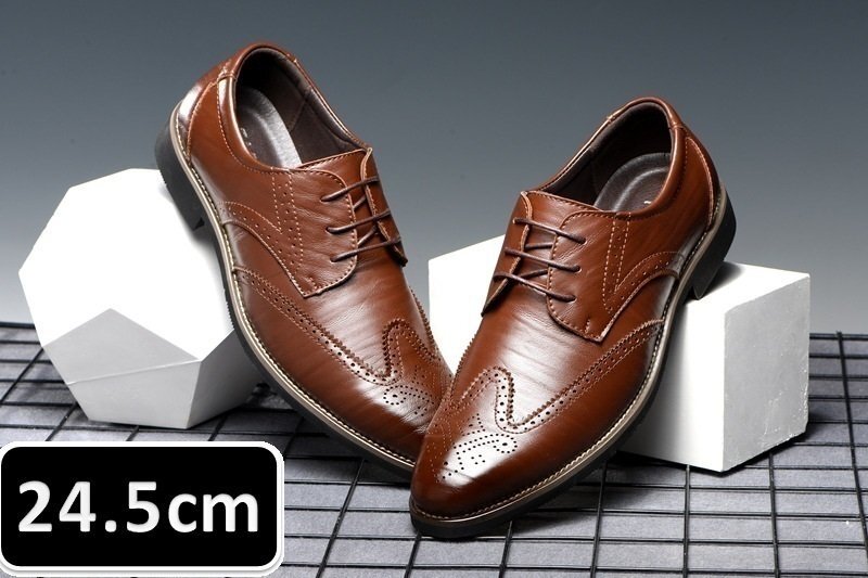 メンズ ビジネス レザー シューズ ブラウン サイズ 24.5cm 革靴 靴 カジュアル 屈曲性 通勤 軽量 柔らかい 新品 【230】