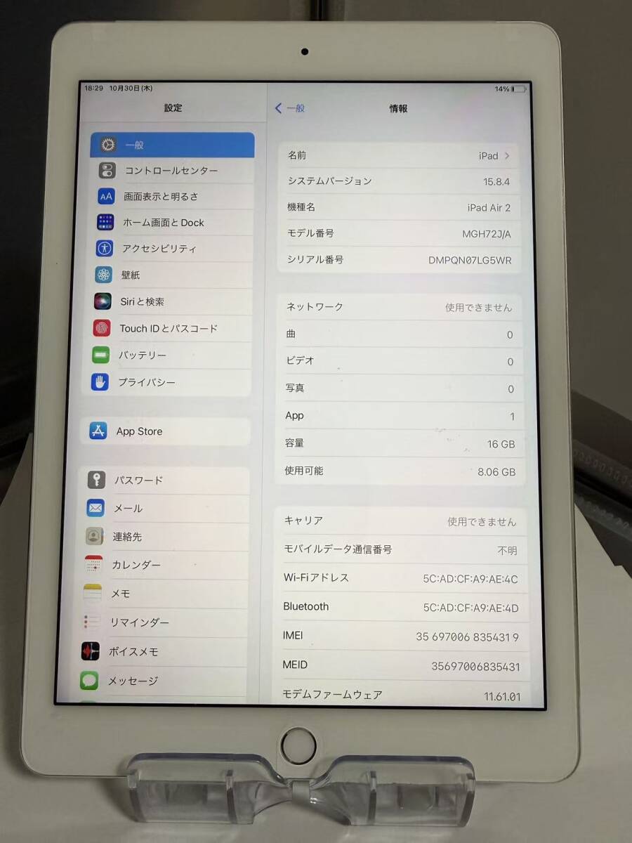 機種:iPad Air 2(Wi-Fi + Cellularモデル)