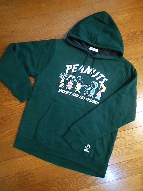 ピーナッツ スヌーピー☆暖かふわふわ裏起毛xフロントプリントパーカー メンズ L 良品 | |||