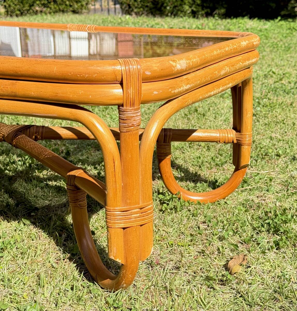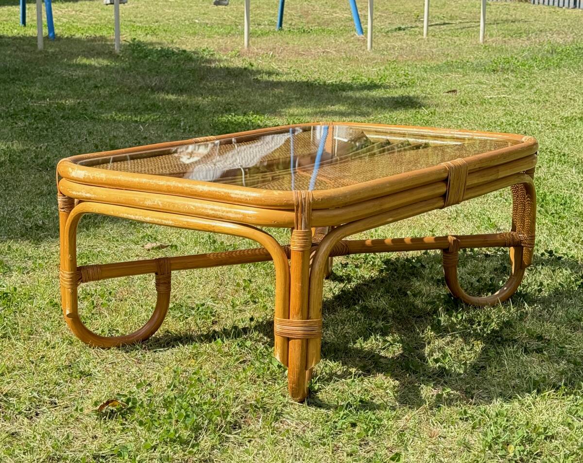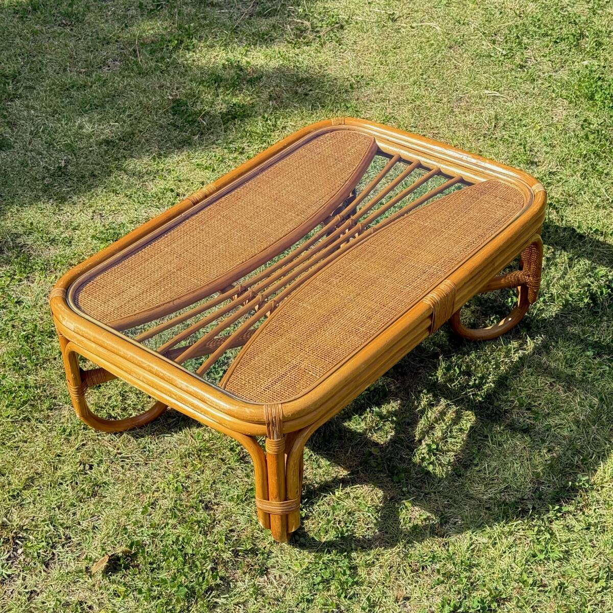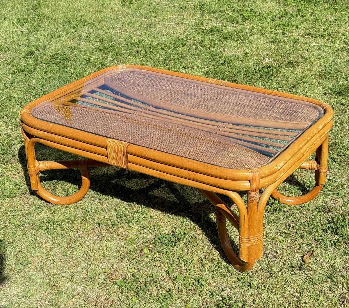 ビンテージ オールドラタン ガラステーブル 見応えのある細かな編み込み!籐家具 センターテーブル リビングテーブル ローテーブル