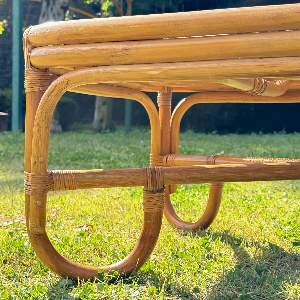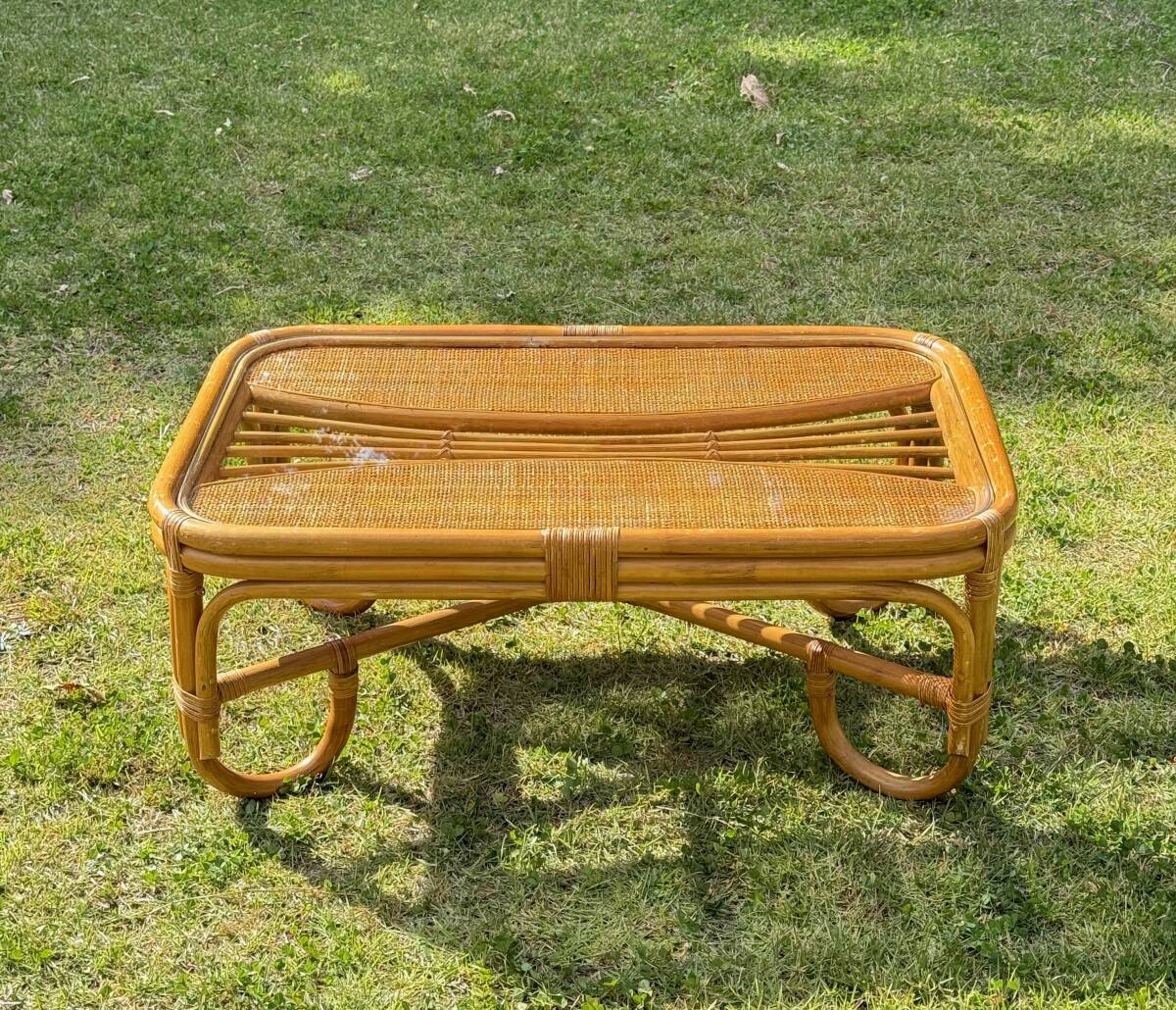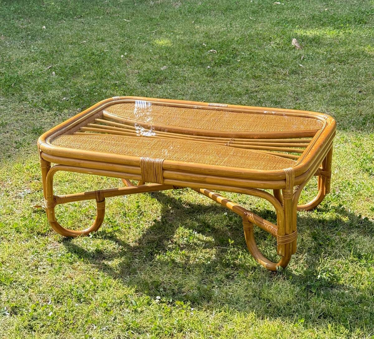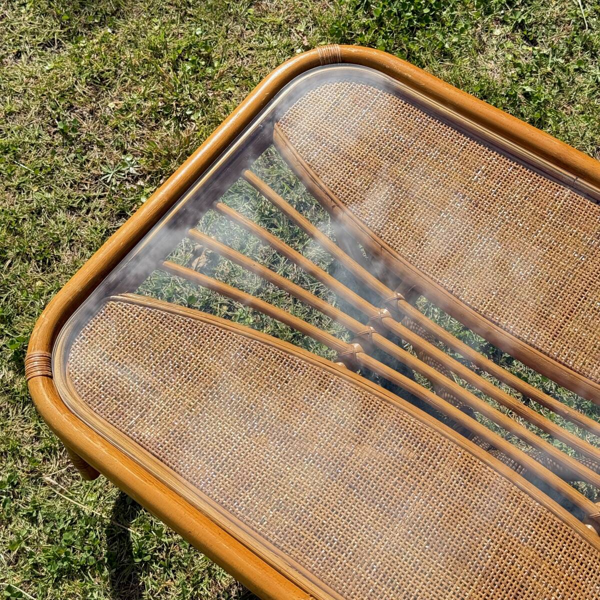 ビンテージ オールドラタン ガラステーブル 見応えのある細かな編み込み!籐家具 センターテーブル リビングテーブル ローテーブル