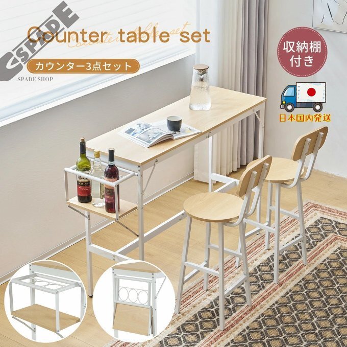 【国内発送】新発売 カウンターテーブル スツール 3点セット ハイテーブル 木製 カウンター モダン 北欧 シンプルダイニングテーブルセット