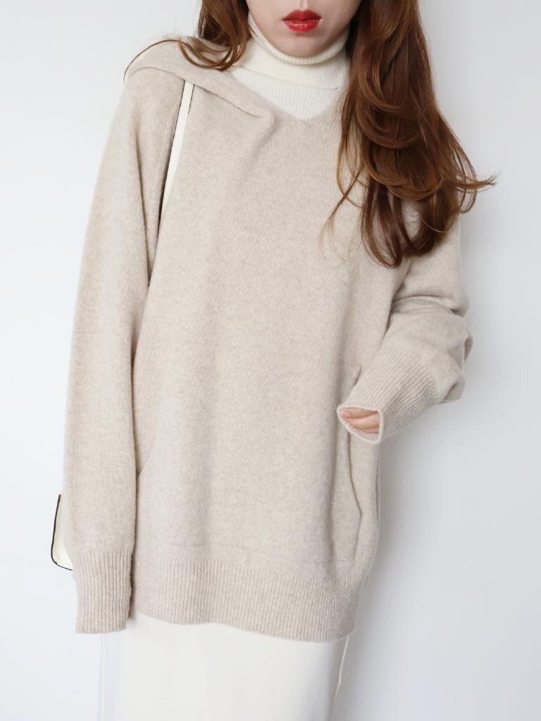【送料込】FRAMeWORK フレームワーク 圧縮ウールフードプルオーバー F(フリー) ベージュ ニット シンプル おしゃれ 6459656